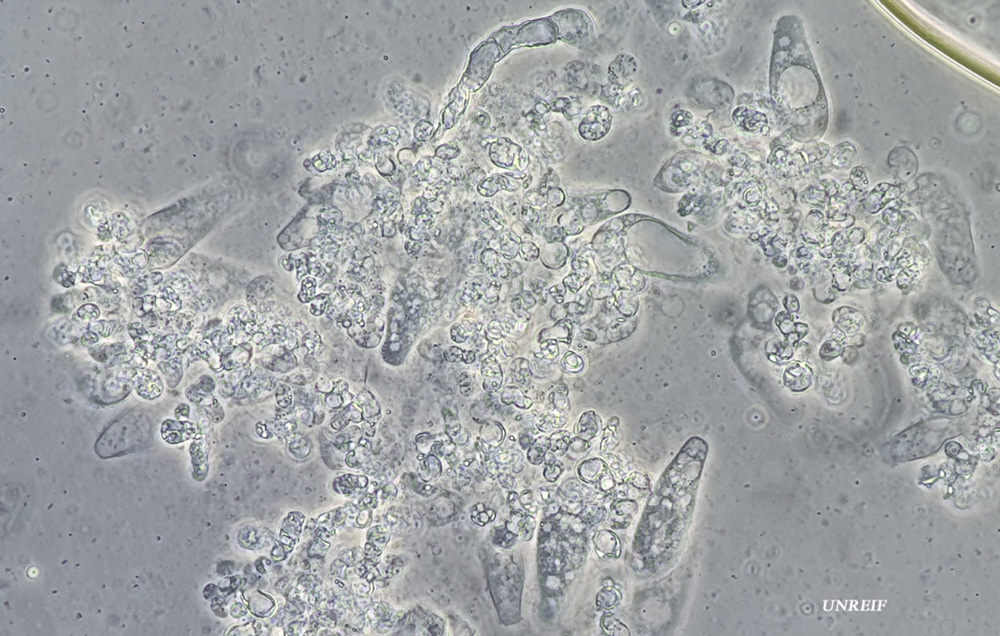 Unter dem Mikro waren sackförmige Asci da und die Sporen waren rund und netzig ornamentiert. Da habe ich mich natürlich gefreut und wollte den Asco