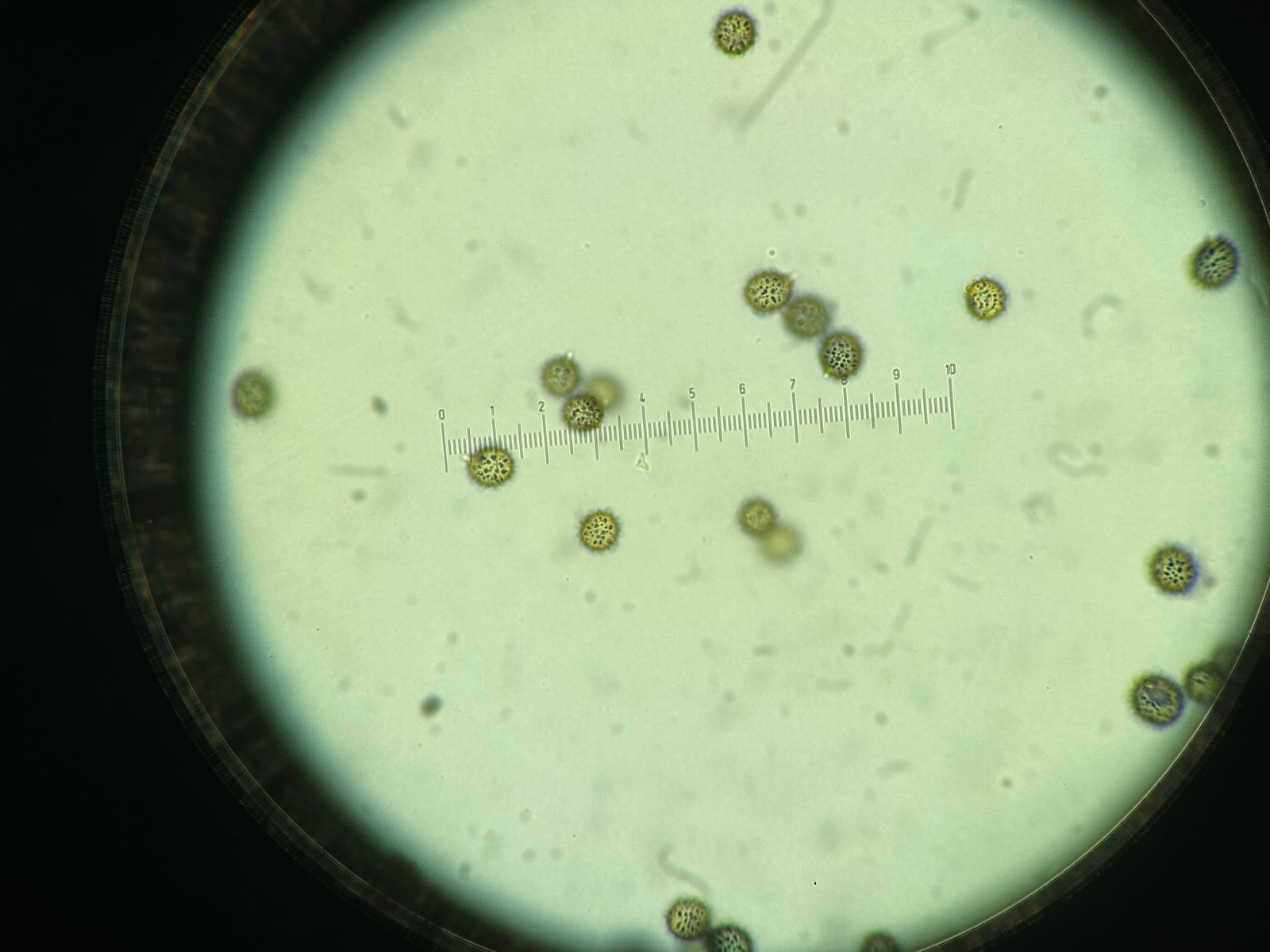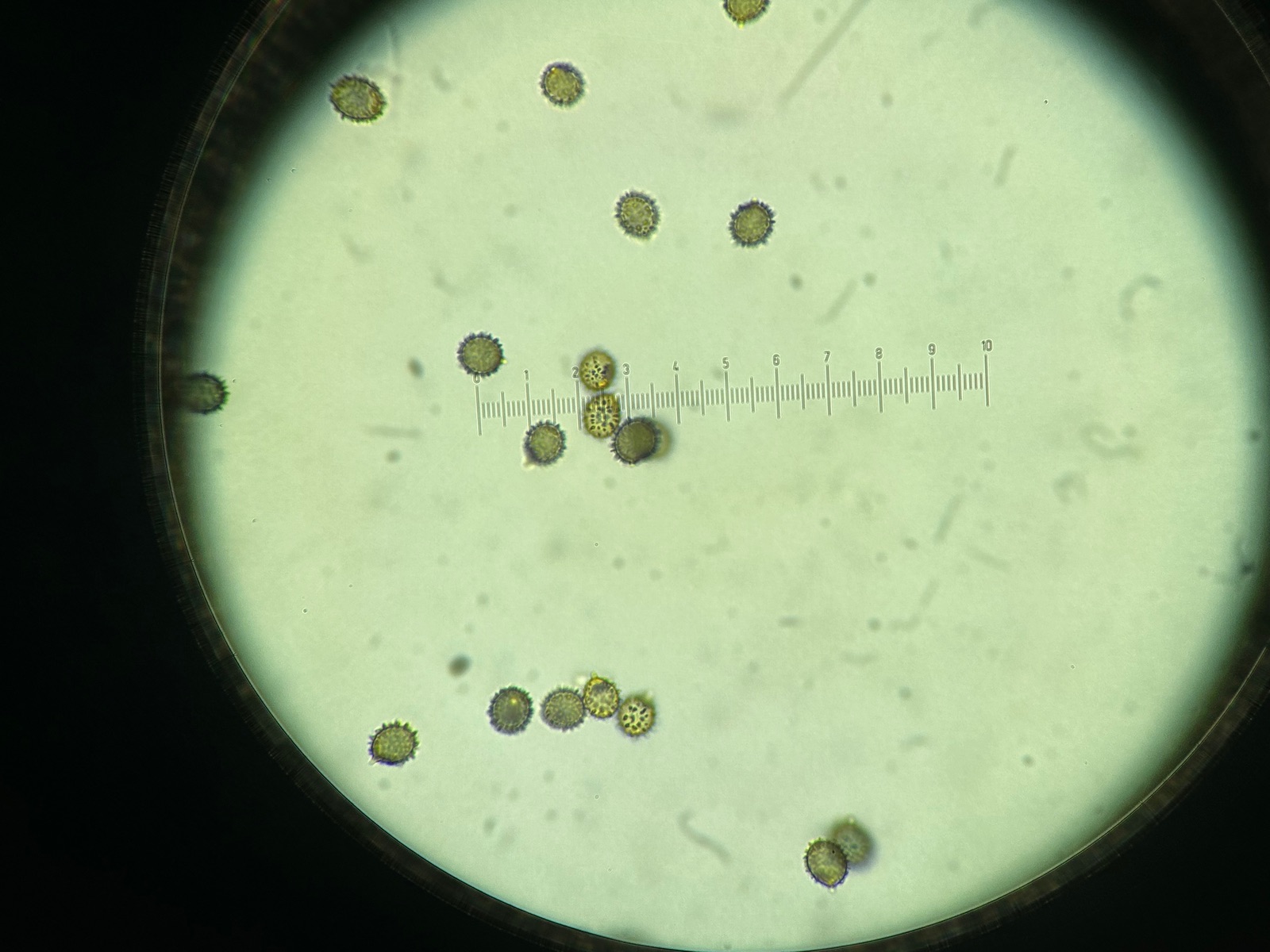 grosse und elliptisch /ovoid, isoliertwarzig mit hohen spitzen Stacheln, welche teilweise amyloid erscheinen: