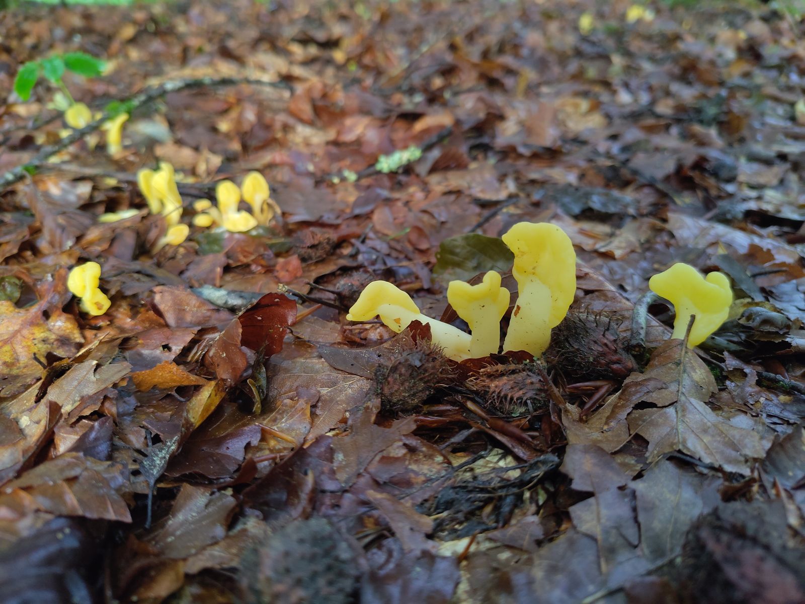 In der zweiten Juniwoche bin ich in Bern einer kleinen Rarität (im Flachland) begegnet. Direkt neben einer beliebten Feuerstelle in einem Stadtwald machten sich am Wegrand Dottergelbe Spatelinge Spathularia flavida breit. Ich finde, das ist äusserst früh im Jahr und etwas ziemlich Seltenes im Schweizer Mittelland auf ca. 500 m.ü.M.! (m.ü.M. = Meter über Meer; in CH übliche Schreibweise)