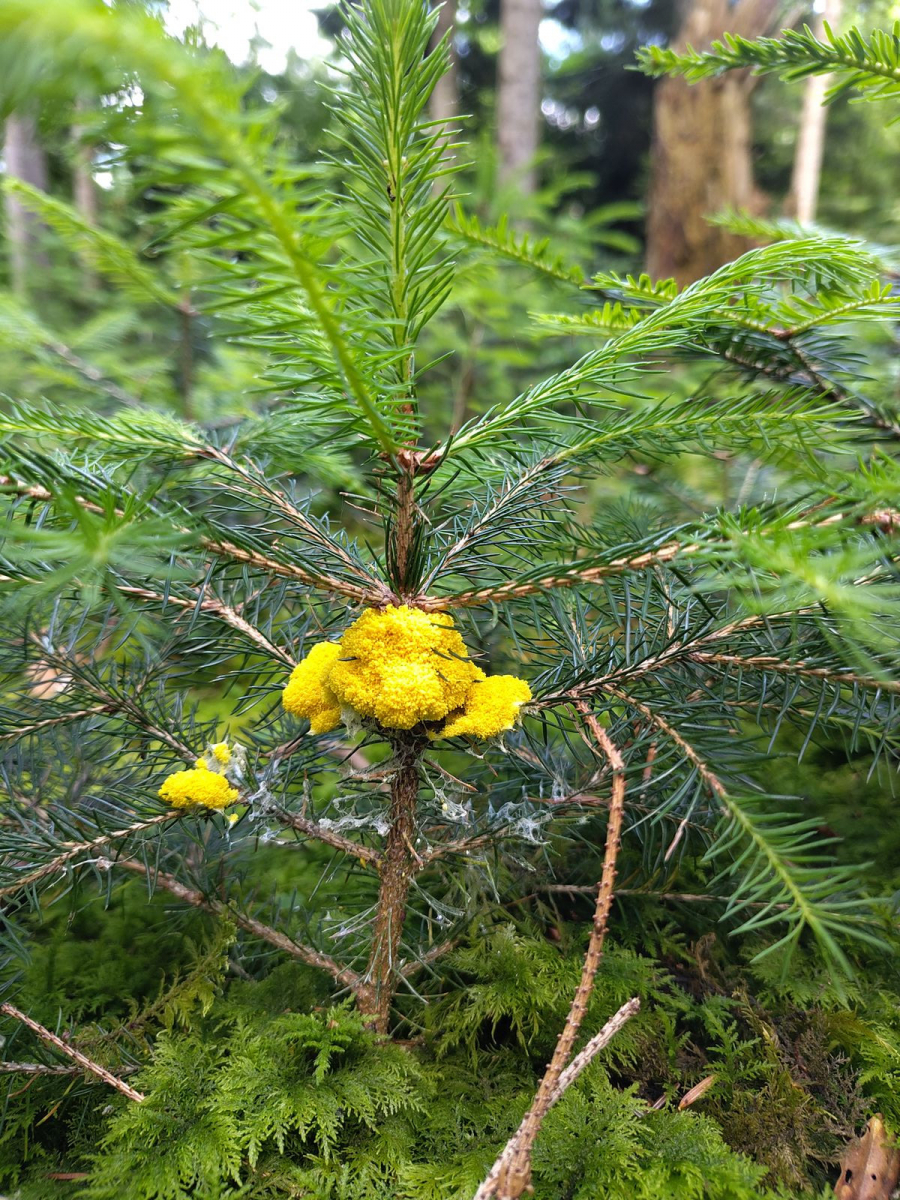 Ebenfalls ein Freudenmoment: Diese Gelbe Lohblüte klettert gerade auf eine Fichte!