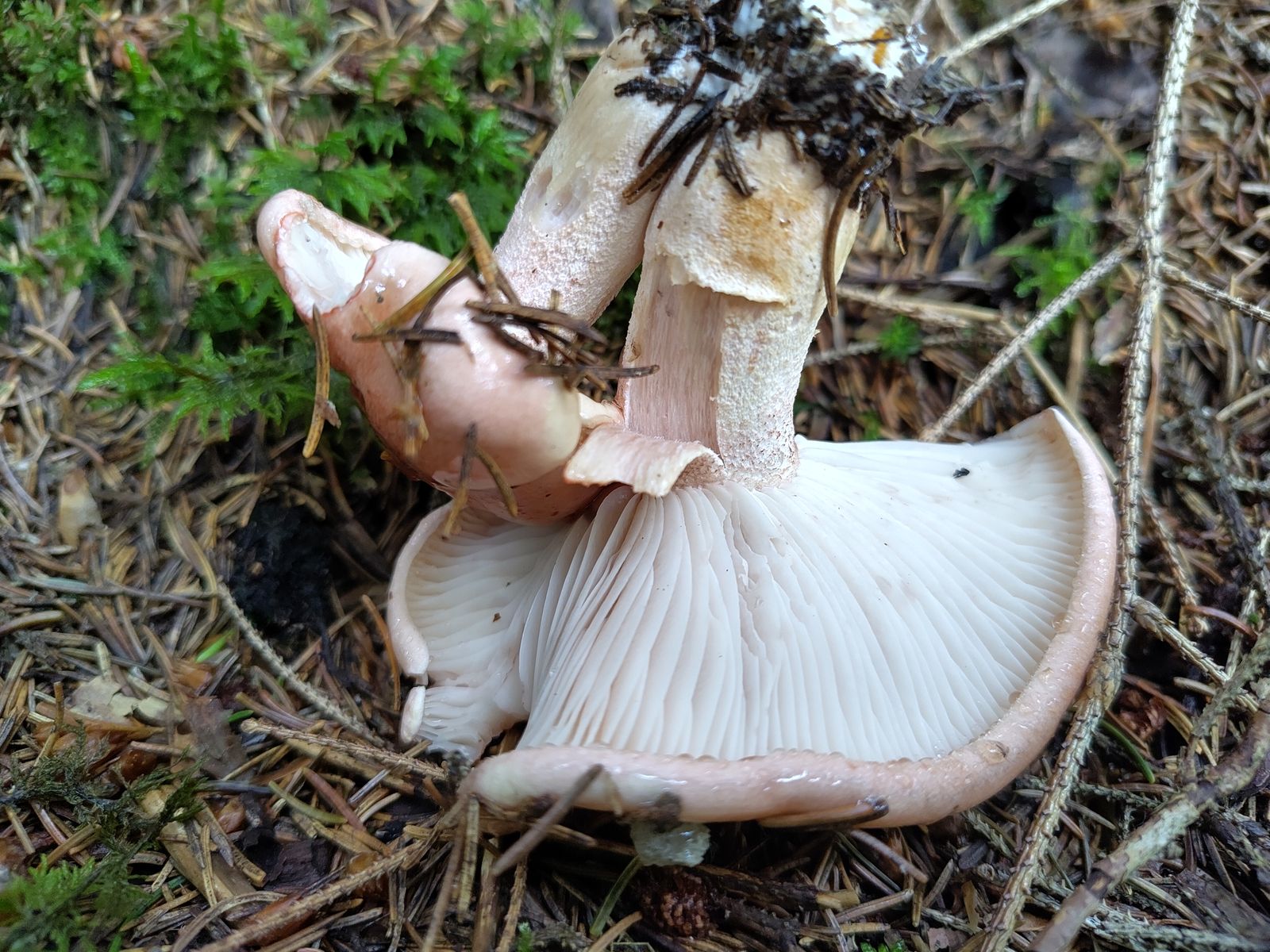 Gleich daneben stiess ich auf eine Gruppe mir unbekannter Gesellen. Unser Forum (danke!) und ich meinen, es handle sich um Rasige Purpur-Schnecklinge Hygrophorus erubescens: