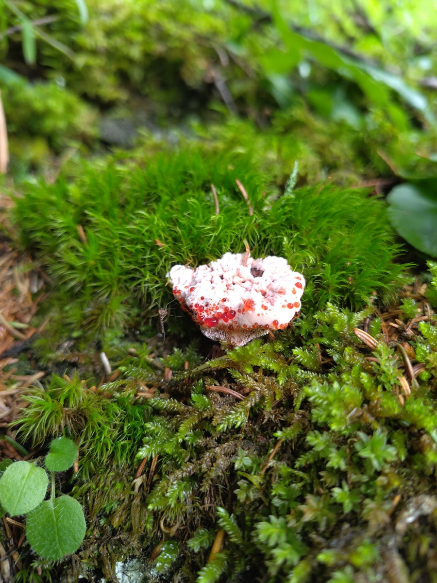 In den vergangenen zehn Tagen war ich mit Freunden wandernd unterwegs von den Waadtländer in die Berner Alpen. Dabei begegnete ich einigen Spezialitäten. Im Pays d'Enhaut (Waadtland; 1380 m.ü.M.) traf ich auf zwei Blutende Korkstachelinge. Eine kleine, scharfe Kostprobe machte alles klar, es handelte sich um den Scharfen Korkstacheling Hydnellum peckii: