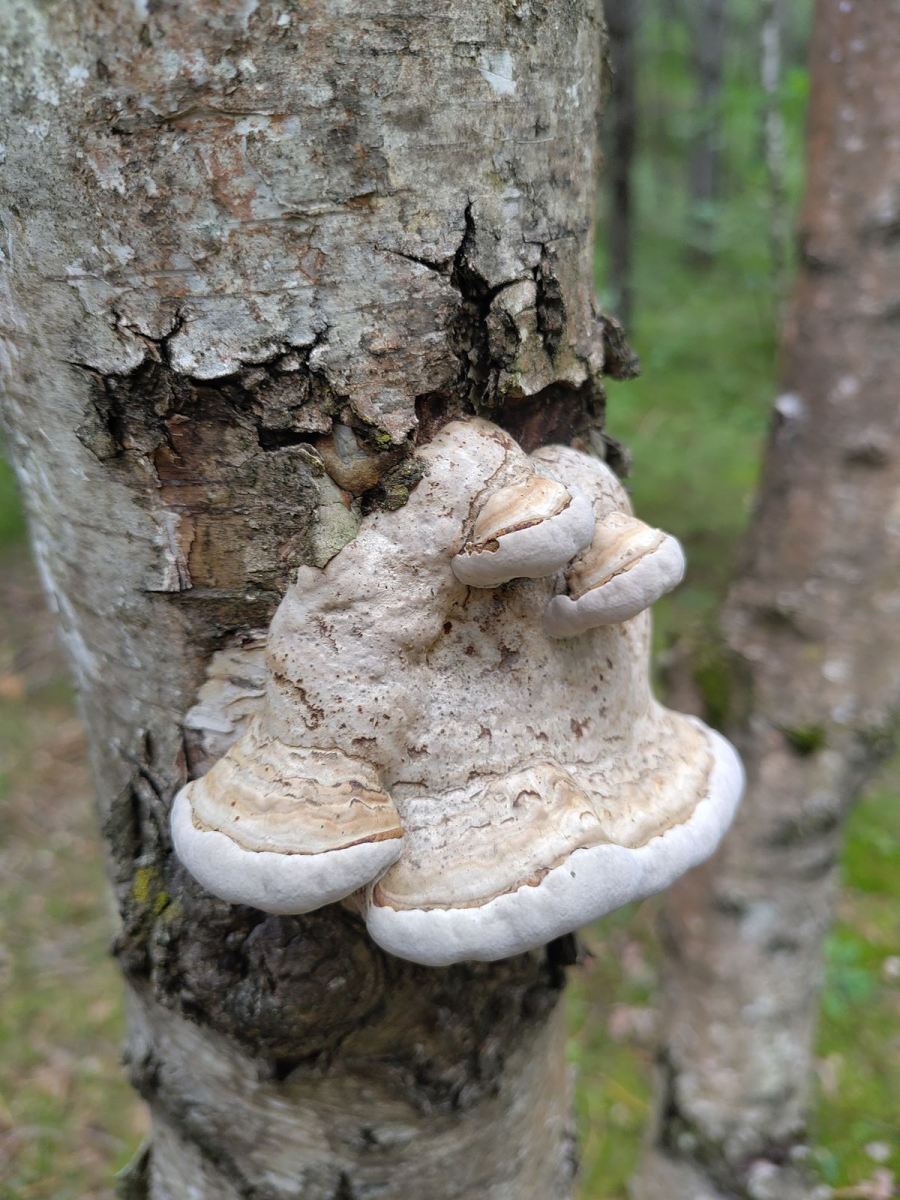 Daneben habe ich diesen jungen, sehr harten Porling entdeckt. Ich denke, es handelt sich um einen Zunderschwamm an Birke: