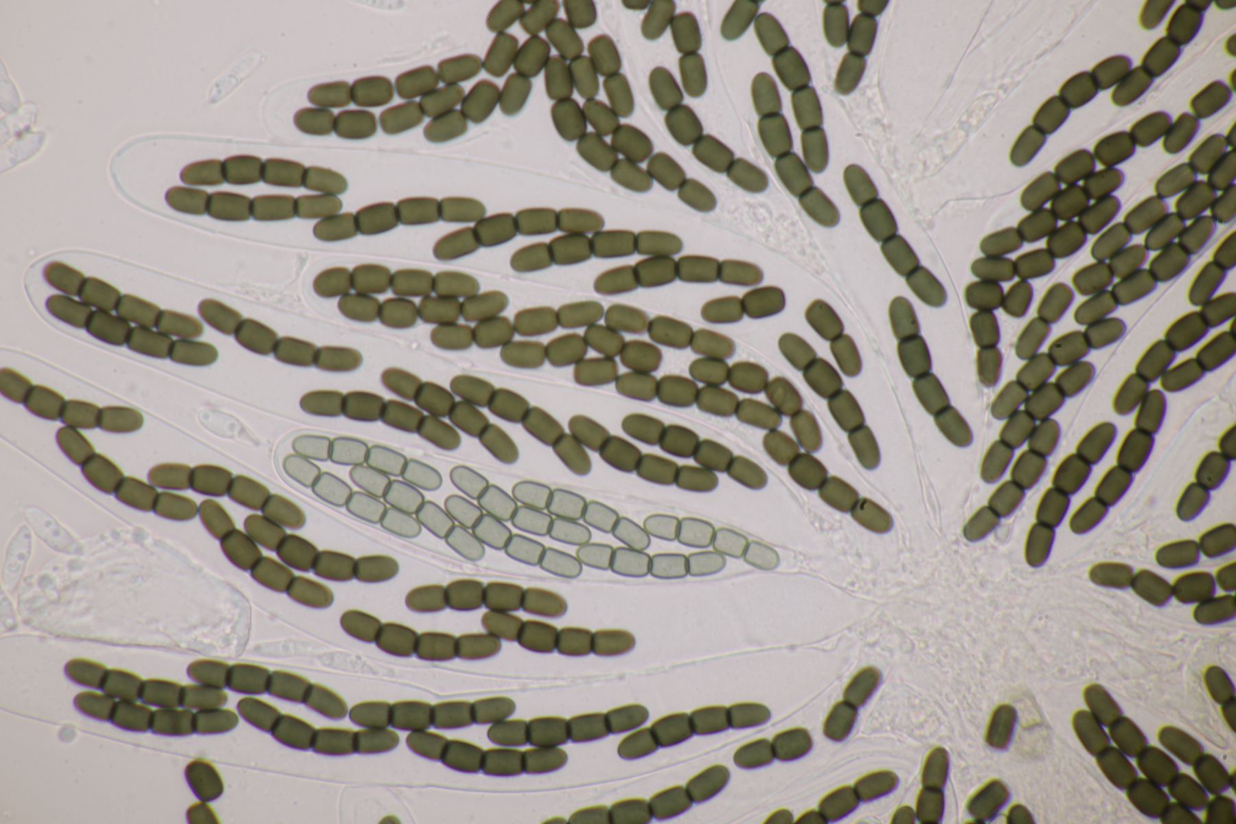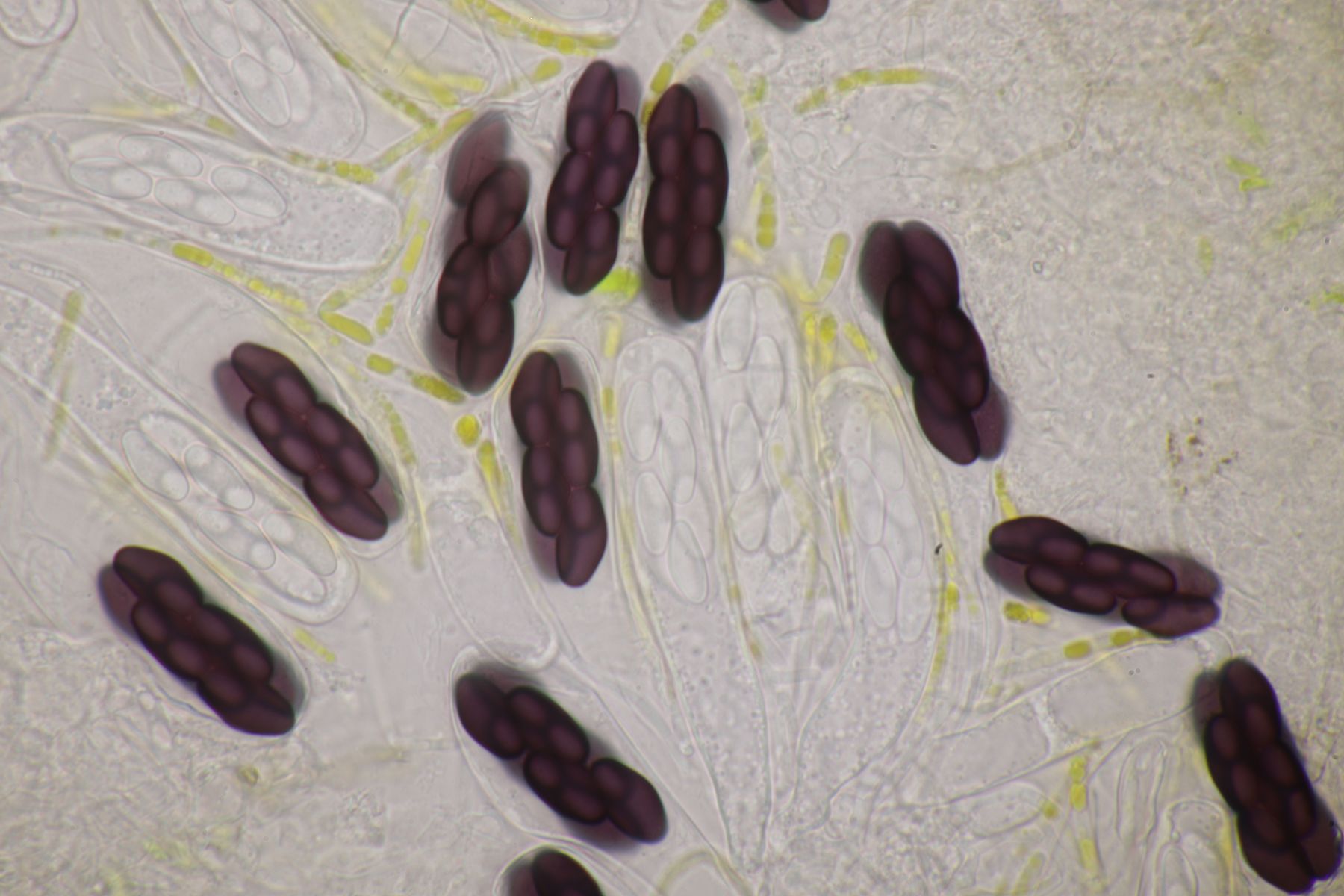 1. Sporormiella minima mit Sporen von 29-32 x 5-6 µm