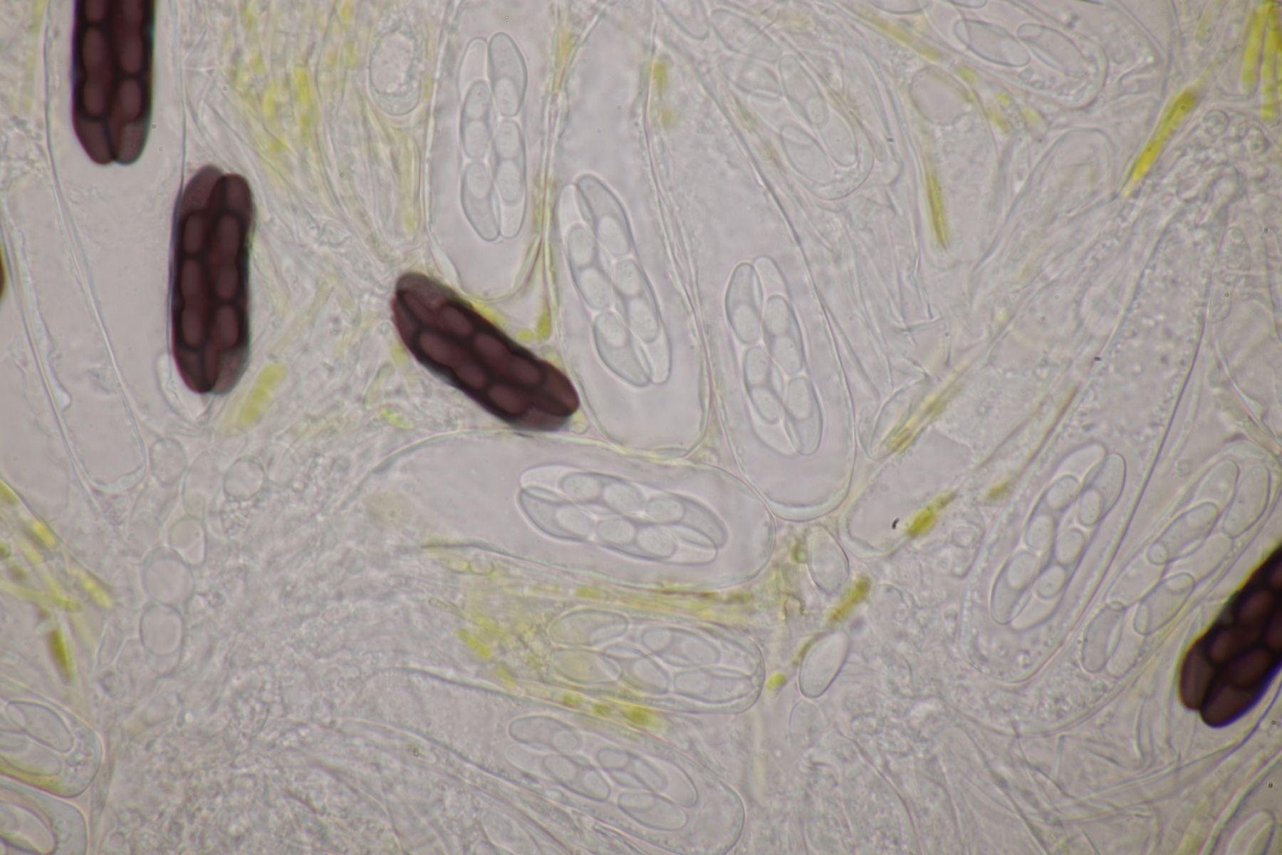 1. Sporormiella minima mit Sporen von 29-32 x 5-6 µm