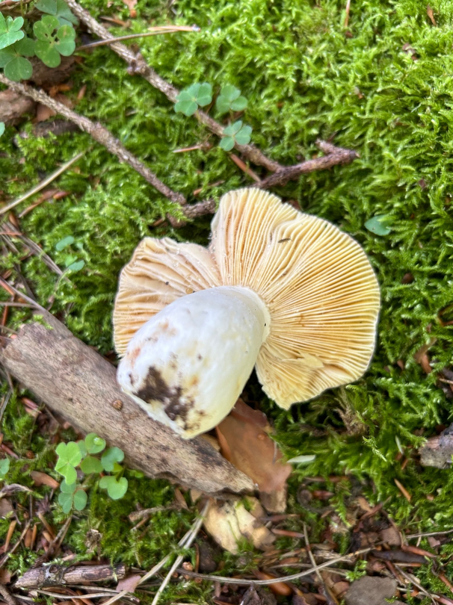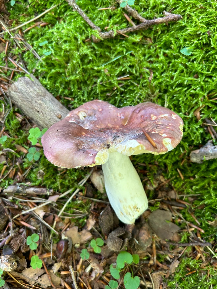 Diese milde Russula habe ich gestern unter einer Rotbuche auf moosigem Terrain neben Kiefern gefunden. An dem Standort hatte ich bisher unter anderem R. silvestris und R. rosea gefunden jedoch noch nie eine Inegrinae.