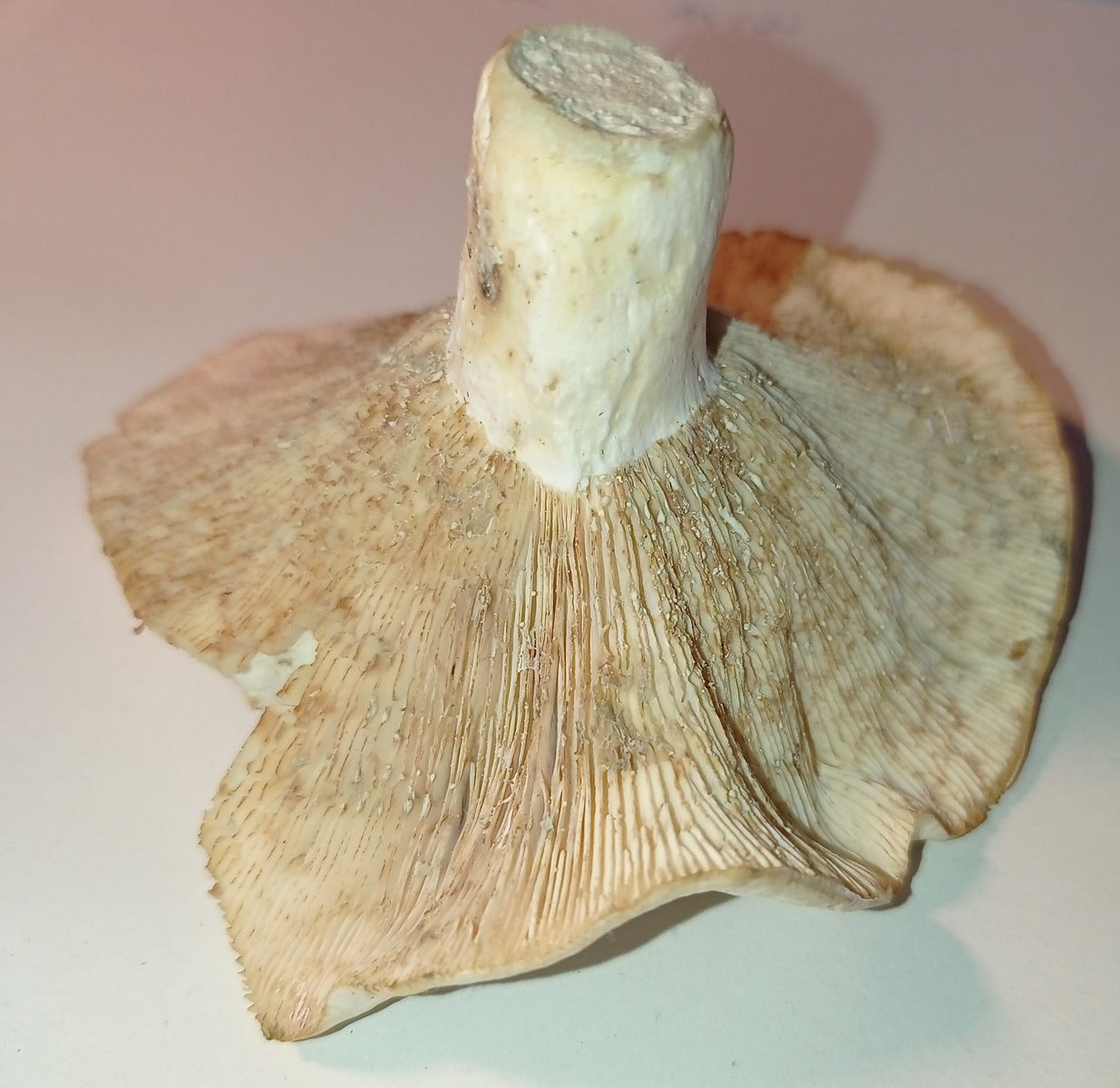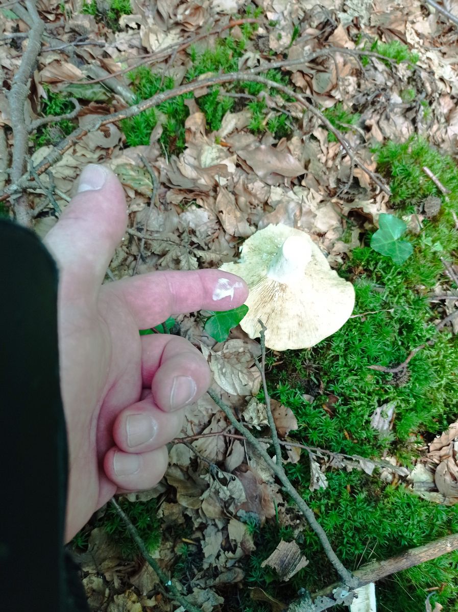 Heute hab ich da einige Pilze gesehen, und 2 mitgenommen, wo ich mir eigentlich sicher bin, dass das Pfeffermilchlinge sind. Milch auf dem Finger gab es beim Schneiden. Nur scharf war es nicht wirklich. Beim Kauen musste ich mir die Schärfe schon einreden. Lediglich die "Milch" die ich vom Finger geleckt habe, war etwas scharf. Aber statt höllenscharf eher Richtung Kindergeburtstag.