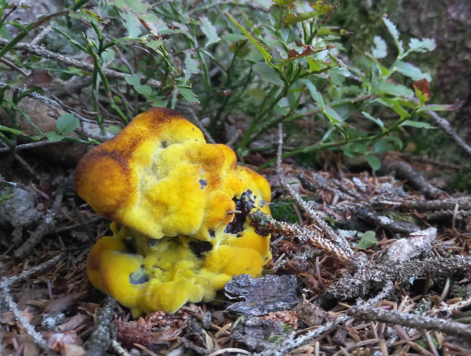 7) Scharfer Korkstacheling Hydnellum peckii (Hier war im Vorteil, wer meinen kürzlichen Thread gelesen hatte.) H. ferrugineum wäre tatsächlich auch möglich ohne Geschmackstest.