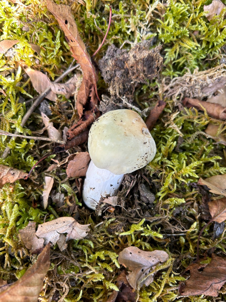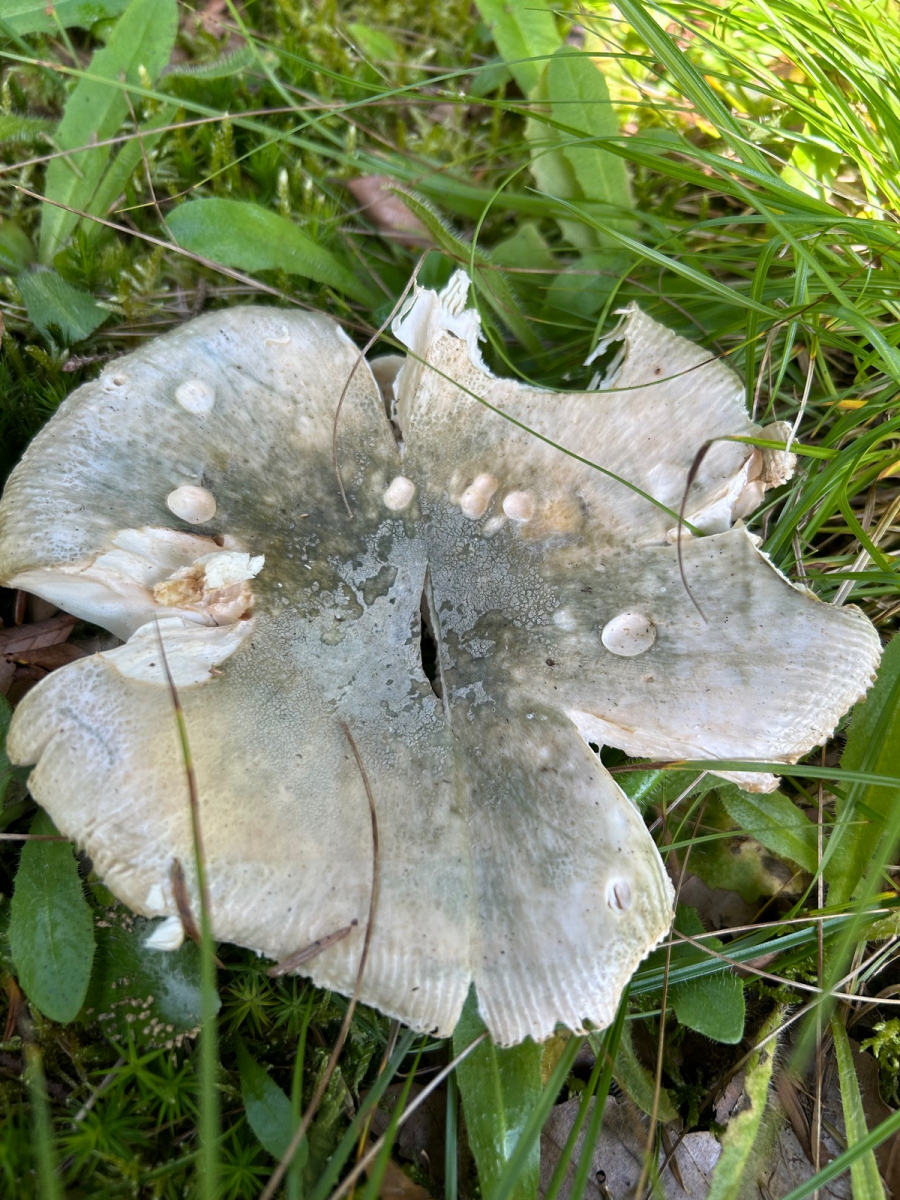 Ein paar Frauentäublinge, ebenfalls abgefressen über die Hälfte, einiges an weißen Stielen mit Miniresten der Huthaut, da find ich sonst R. parazurea. zwei harte Zinnobertäublinge, mit Schnecken und Ameisen.