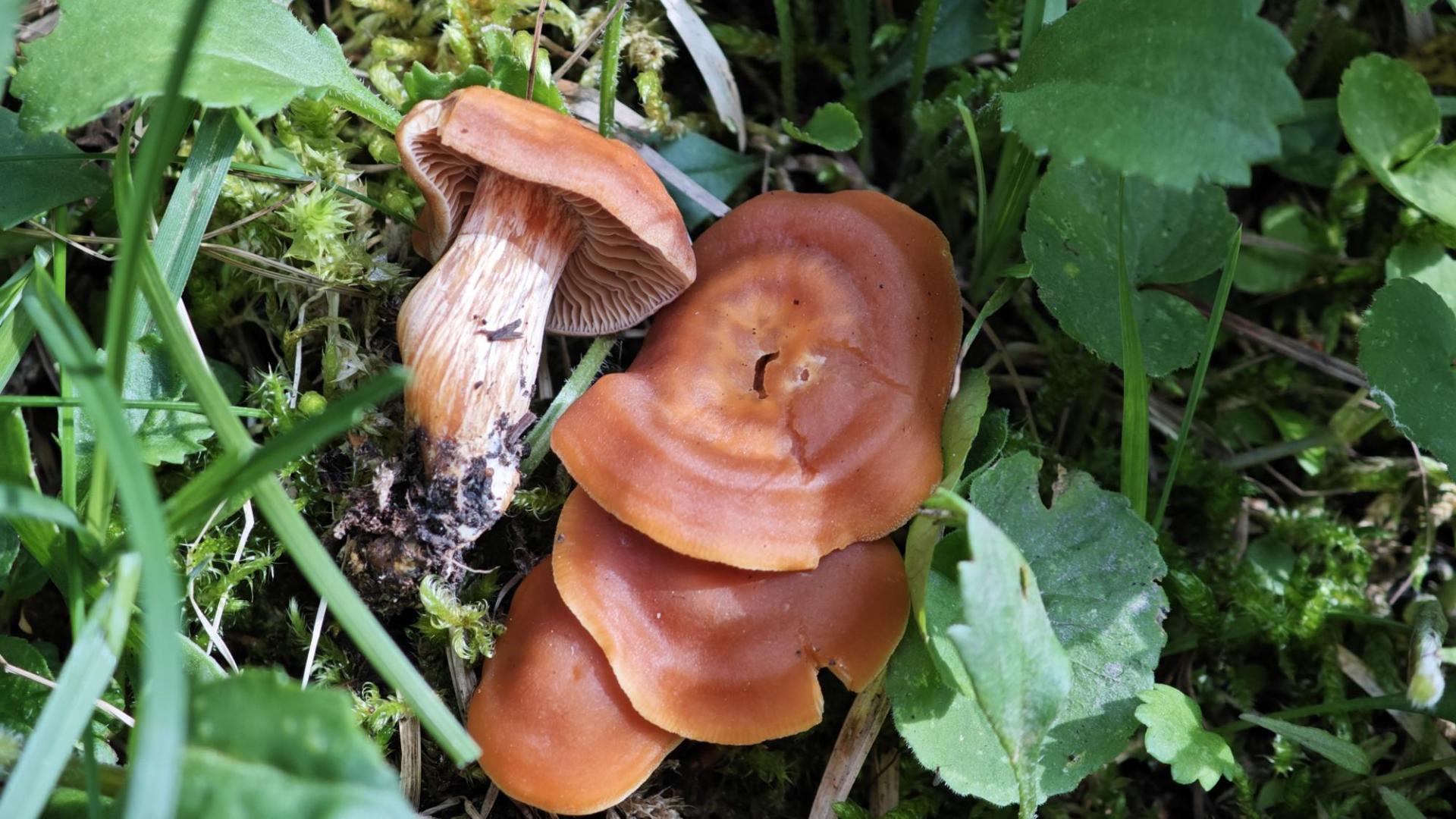 Am Samstag war ich noch im Wald und habe am Waldrand in der Nähe zu einem kleinen Bächlein zwischen Gräsern und Moos eine Gruppe Schleierlinge entdeckt. Es war etwa auf 1750m und in der Nähe standen Fichten. Die Pilze wuchsen büschelig bis gesellig, der Hutdurchmesser betrug etwa 2.5 - 3.5cm und sie waren stark hygrophan. Der Geruch war schwach und ich konnte nichts spezielles feststellen. Da ich letztes Jahr schon einmal dachte, C. renidens gefunden zu haben, es sich dann aber als falsch herausstellte, bin ich jetzt vorsichtiger geworden. Allerdings komme ich beim Schlüsseln dorthin und diesmal waren die wirklich sehr orangefarben.