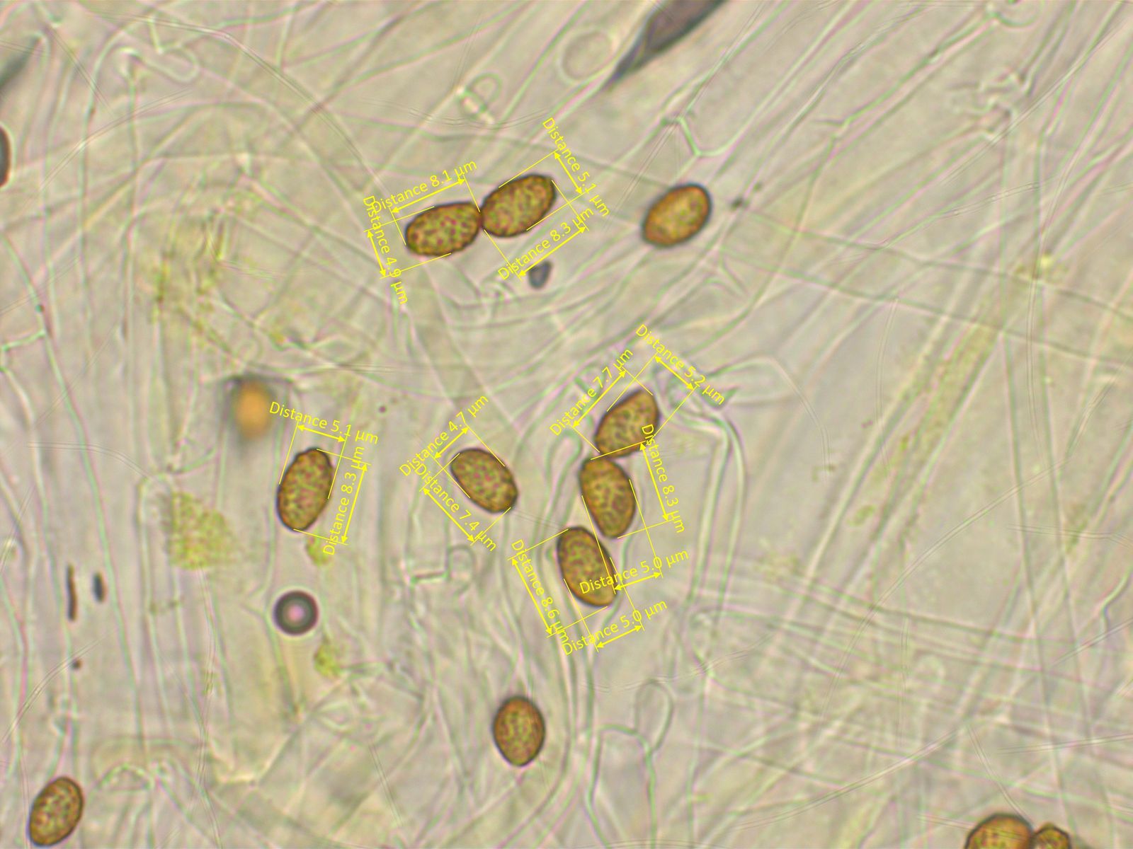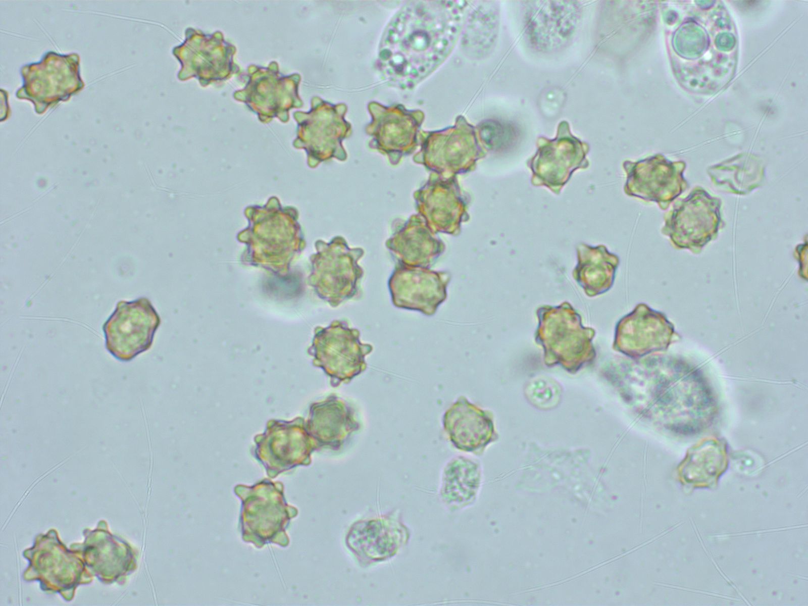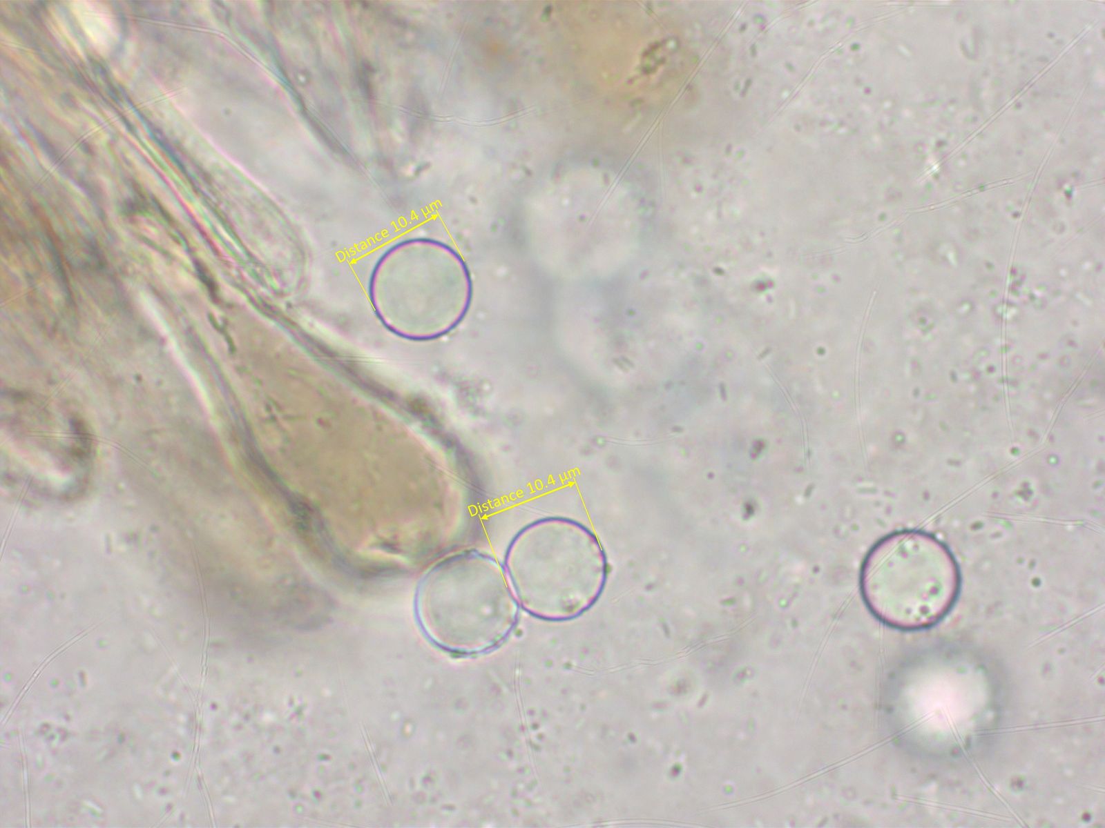 Wie der Name schon sagt, sind die Sporen kugelrund.