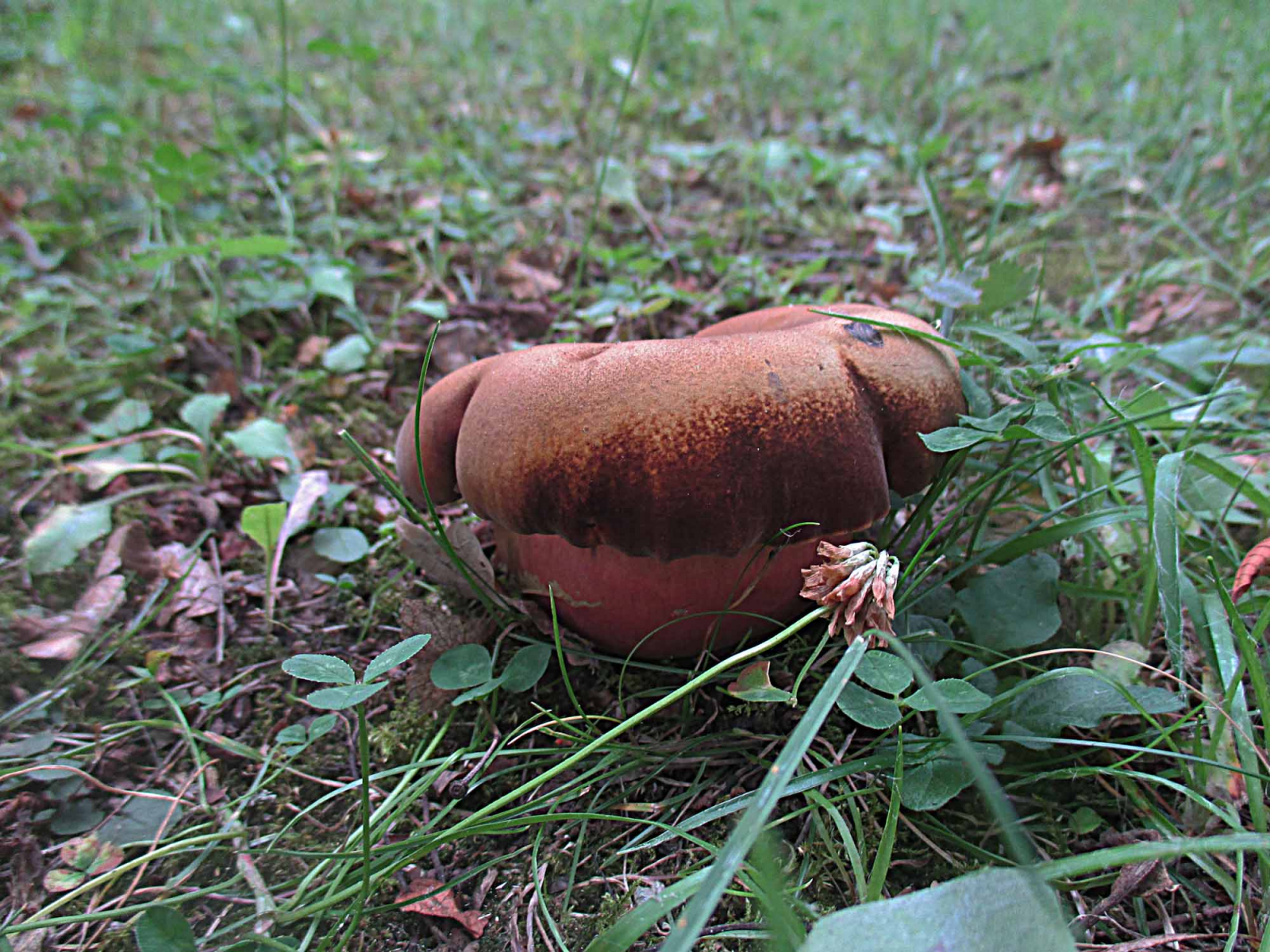 Auch ein einsamer Brauner Ledertäubling (Russula integra) quälte sich aus dem Boden.