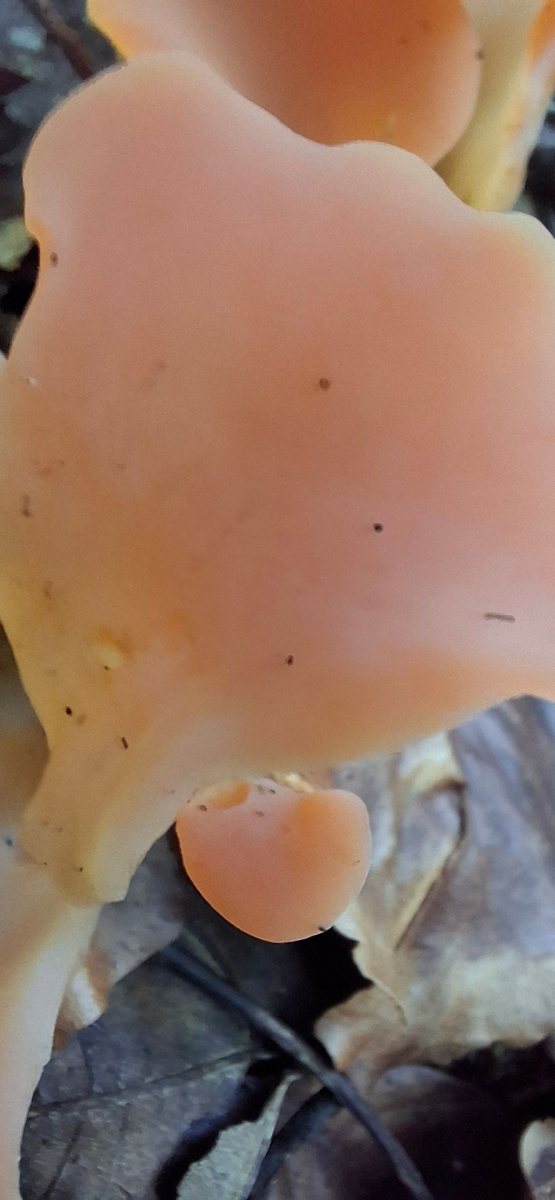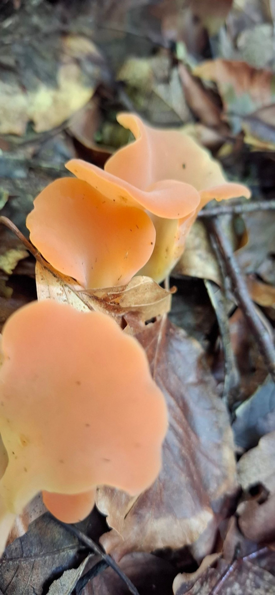 heute sind mir eine Menge tolle Funde untergekommen. Reizker, Röhrlinge und so. Und neben einer sehr schönen Koralle (evtl stelle ich die noch hier ein) auch dieses schöne Wesen. Liege ich richtig mit dem rötlichen Gallerttrichter / Guepinia helvelloides?