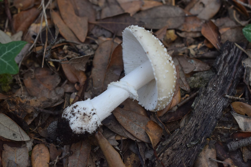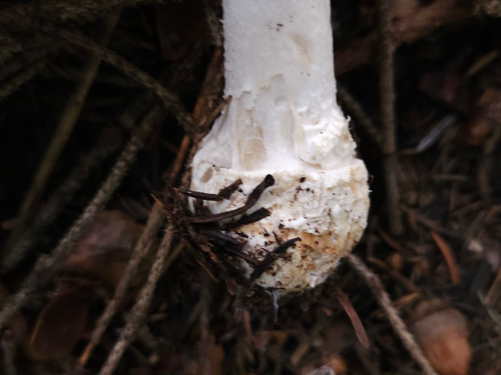 Knolle flockig bis gegürtelt, erinnert etwas an A. pantherina.