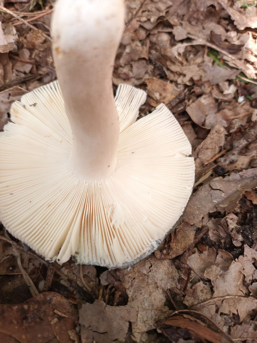 Er wuchs an einem Wegrand, Erde sandig, sauer. Lamellen biegsam wie bei einem Frauentäubling. Das hat mich irritiert, weil das nur ganz wenige Täublinge machen. Geschmack nussig. Begleitbäume Birken, Eichen, Nadelbäume. Google zeigt mir diesen Täubling an. Und ich finde diesen Vorschlag gar nicht mal so fern.
