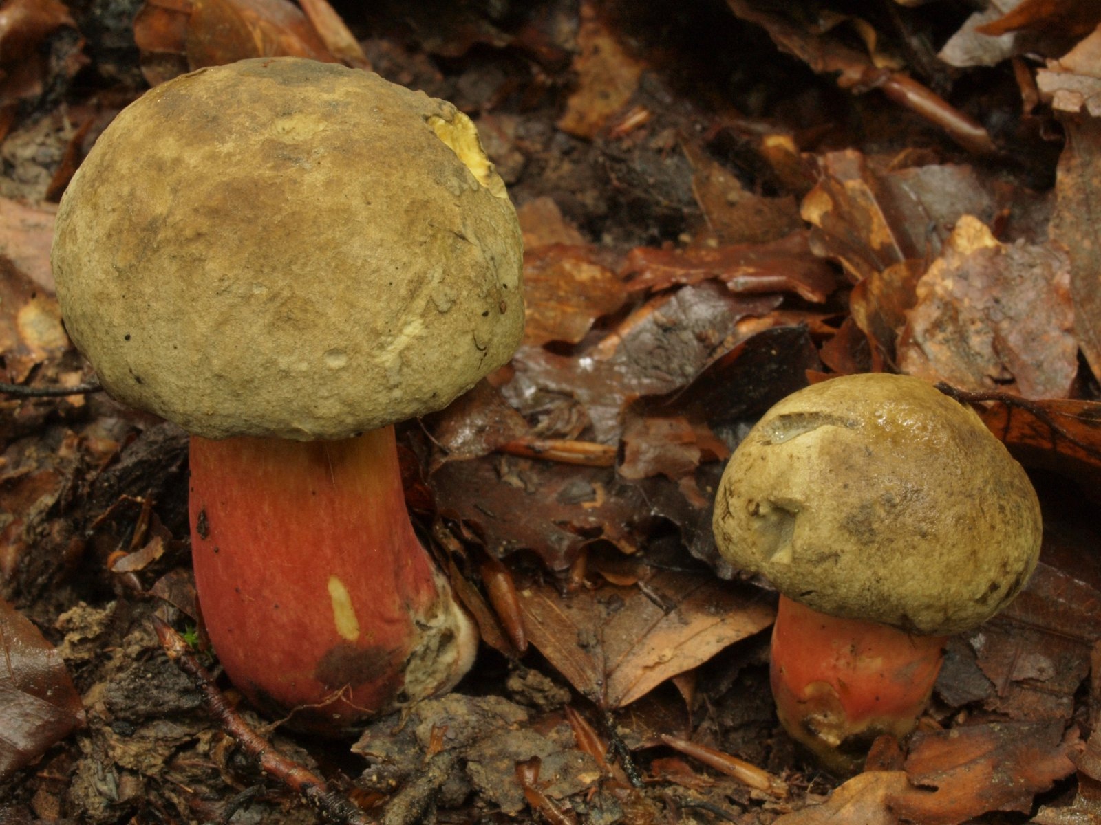 Im Beitrag Ein bisschen was aus der Eifel hatte ich Caloboletus calopus fälschlicherweise als C. polygonius bezeichnet. Das Vorkommen im Kalklbuchenwald und das scheinbar fehlende Netz sind jedoch keine ausreichenden Kriterien.