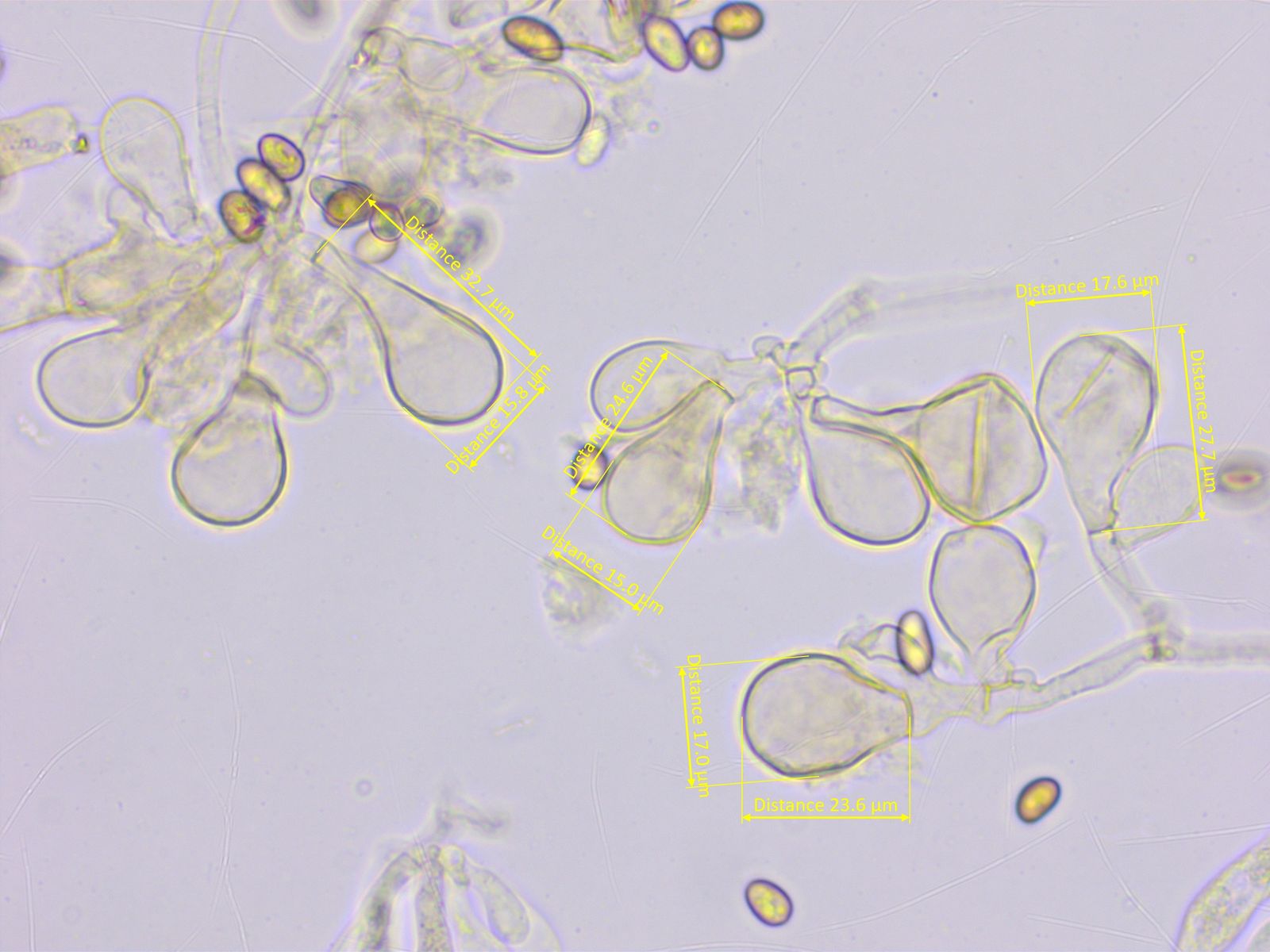 Zystiden keine, Basidien mehrheitlich 2-sporig, keine Schnallen gefunden.