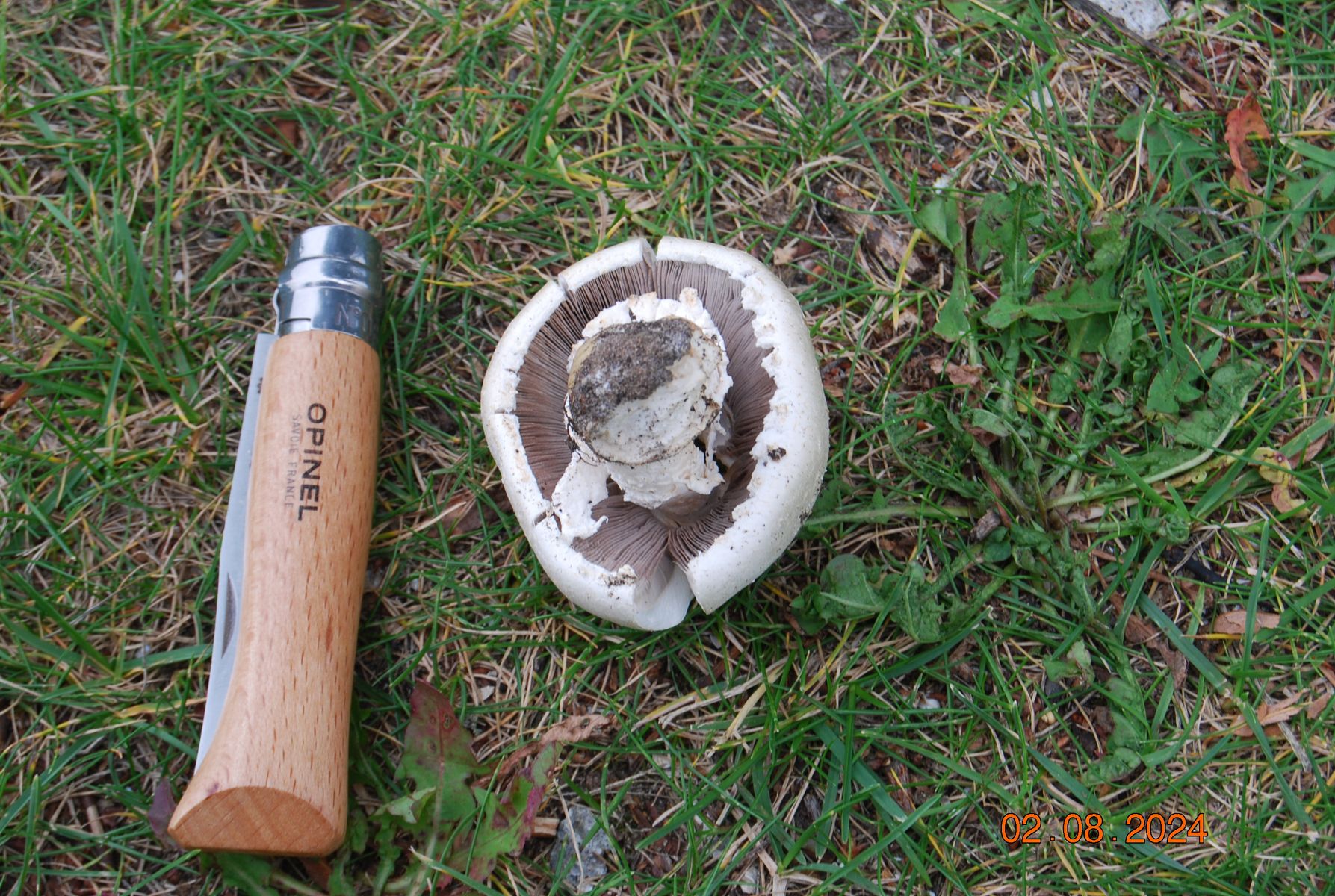 Dort fand ich auf einem Grünstreifen vor der Küstendüne Blickrichtung Neuwarp/Nowe Warpno (Polen) wohl den nordöstlichsten Egerling zumindest in dieser Pilzsaison, und aufgrund des Stand-/Fundorts, des Fk., des Geruchs (Lakritze) etc. tippe ich hier auf Agaricus arvensis, den Weißen Anis-Champignon.