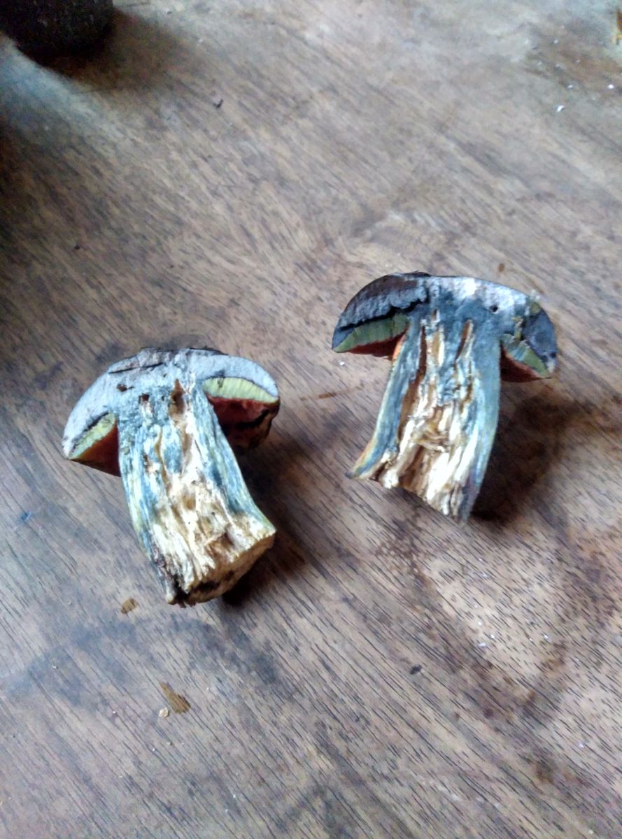 Für die Übung bei der Bestimmung hier noch Fotos des zuerst vermuteten Flockenstieligen Hexenröhrlings in ganz jung und ausgewachsen.
