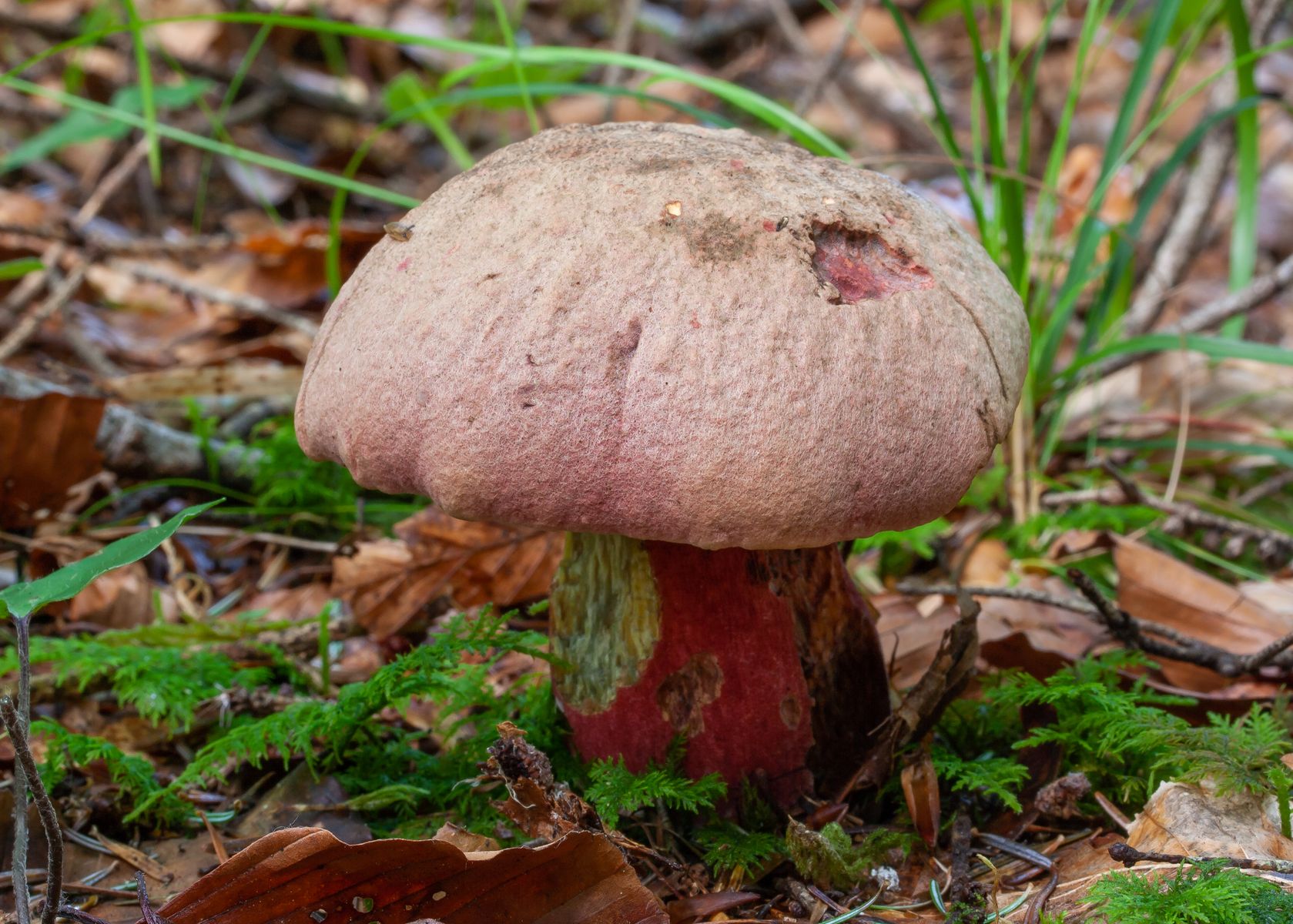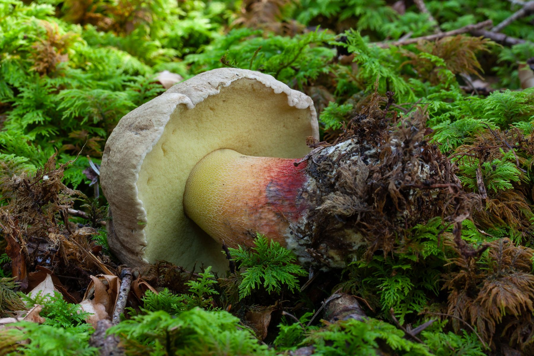 8. Im gleichen Wald mit Fichten und Buchen auch gut vertreten: Weinroter Purpur-Röhrling - Rubroboletus rubrosanguineus