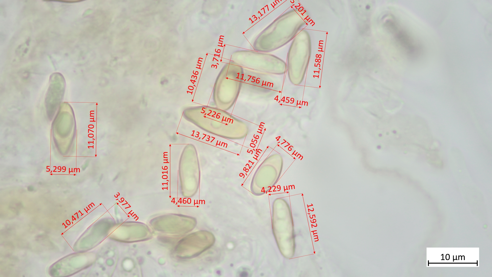 Sporen: Lm x Bm 11,9-12,6 x 4,7-4,8 µm Q: 2,5-2,7