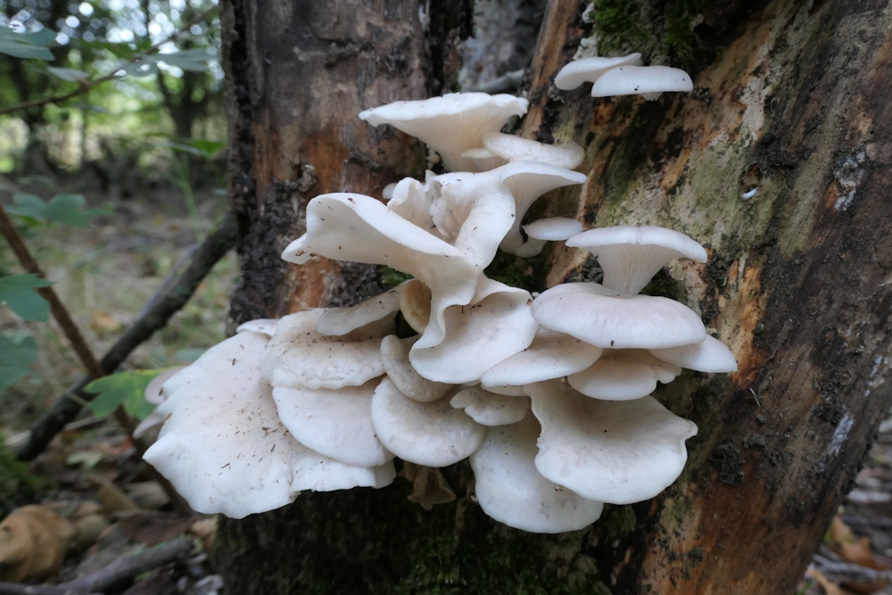 Auf der weiteren Fahrt habe ich Lungen-Seitlinge, von 1 bis 2 mm Größe bis uralt, entdeckt; ebenfalls massenhaft viele:
