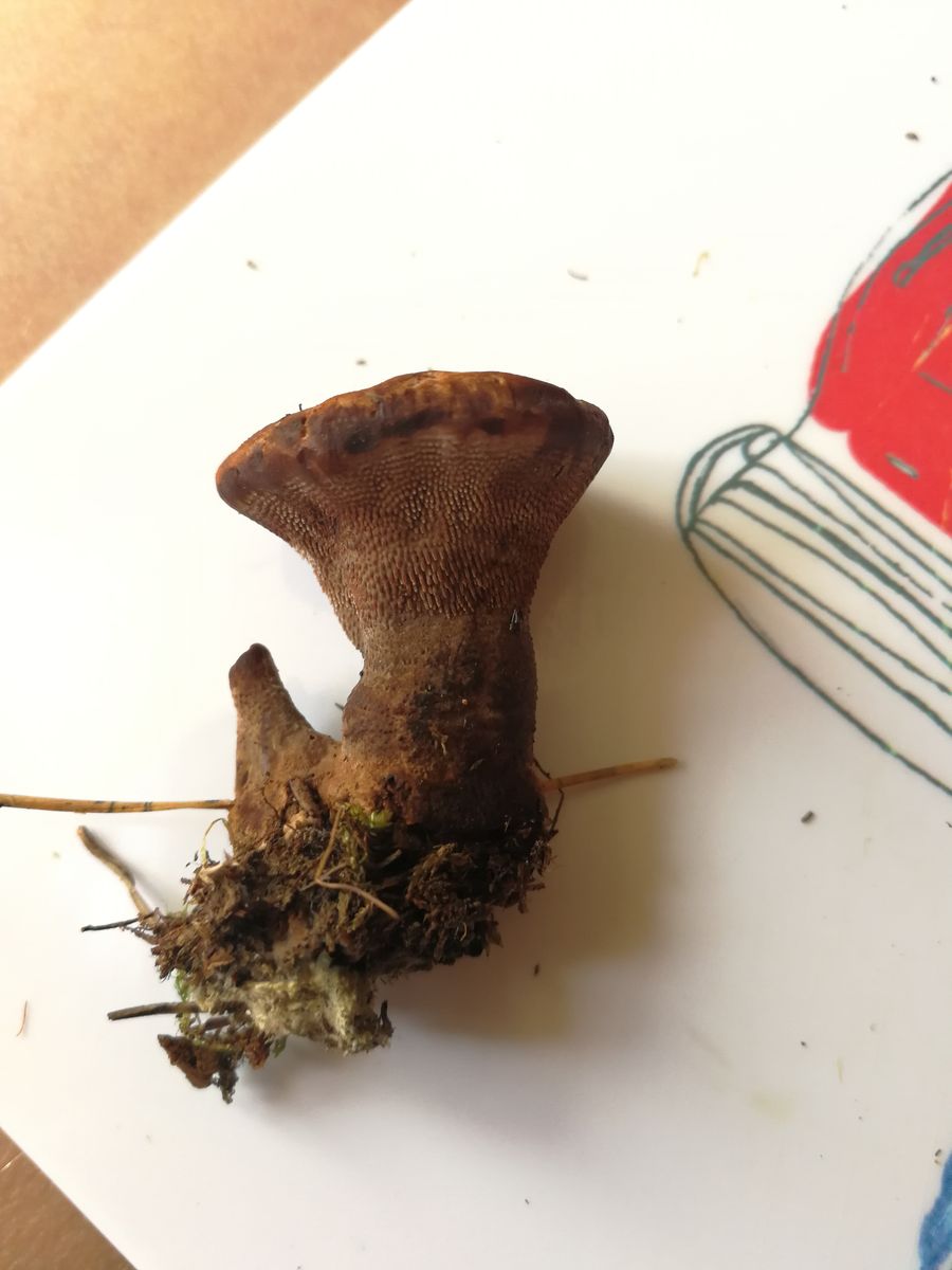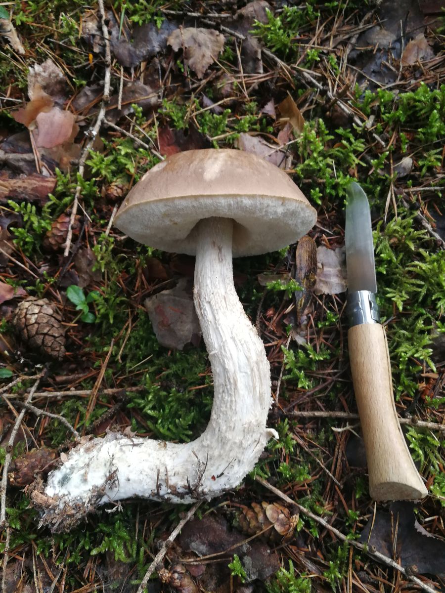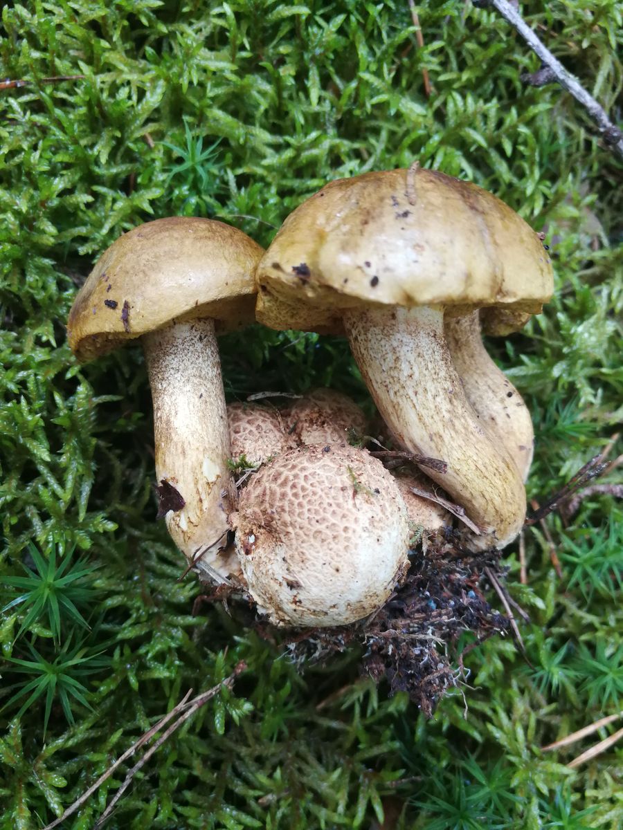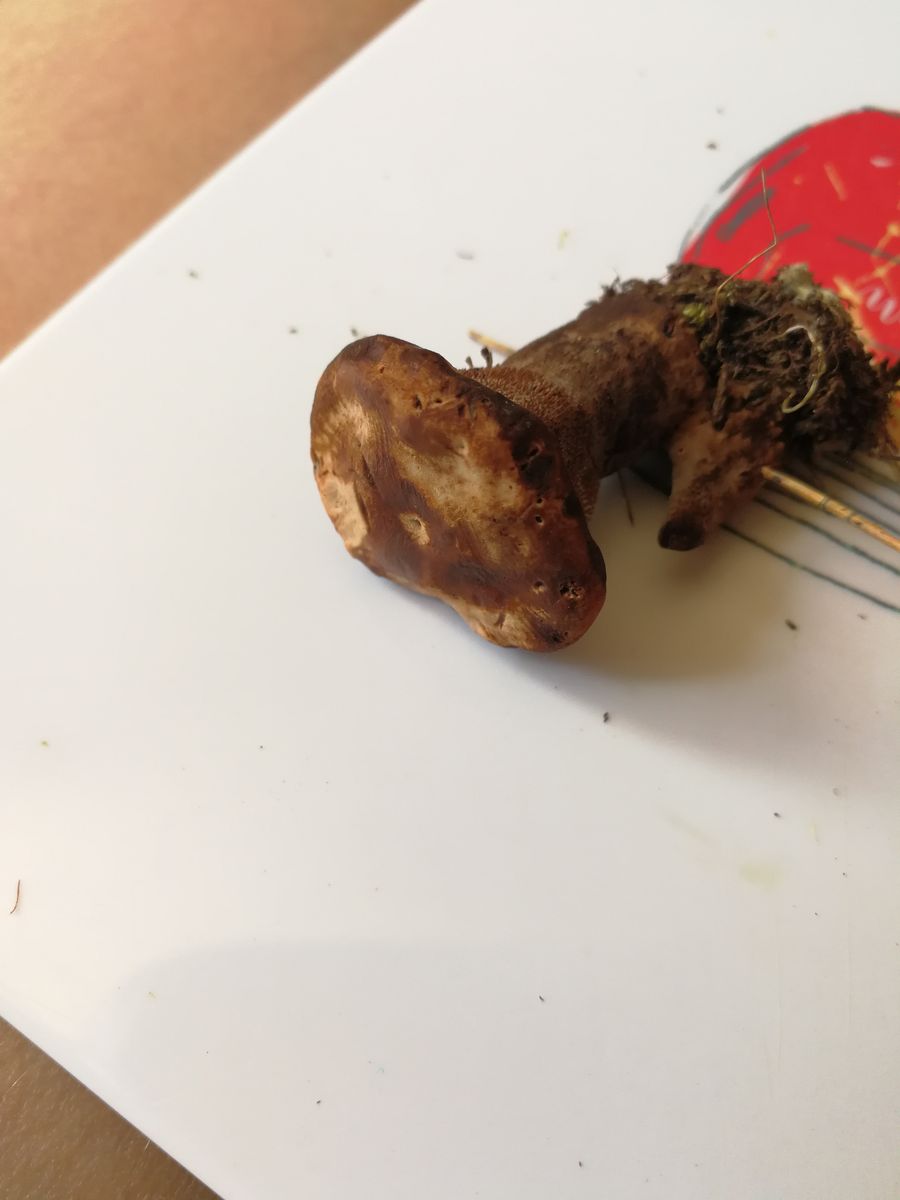Aber aufgrund des auffälligen Stiel und der kleinen Blaufärbung an der Stielbasis würde ich makroskopisch beim Wolligen Raufußröhrling (Leccinum Cyaneobasileucum)