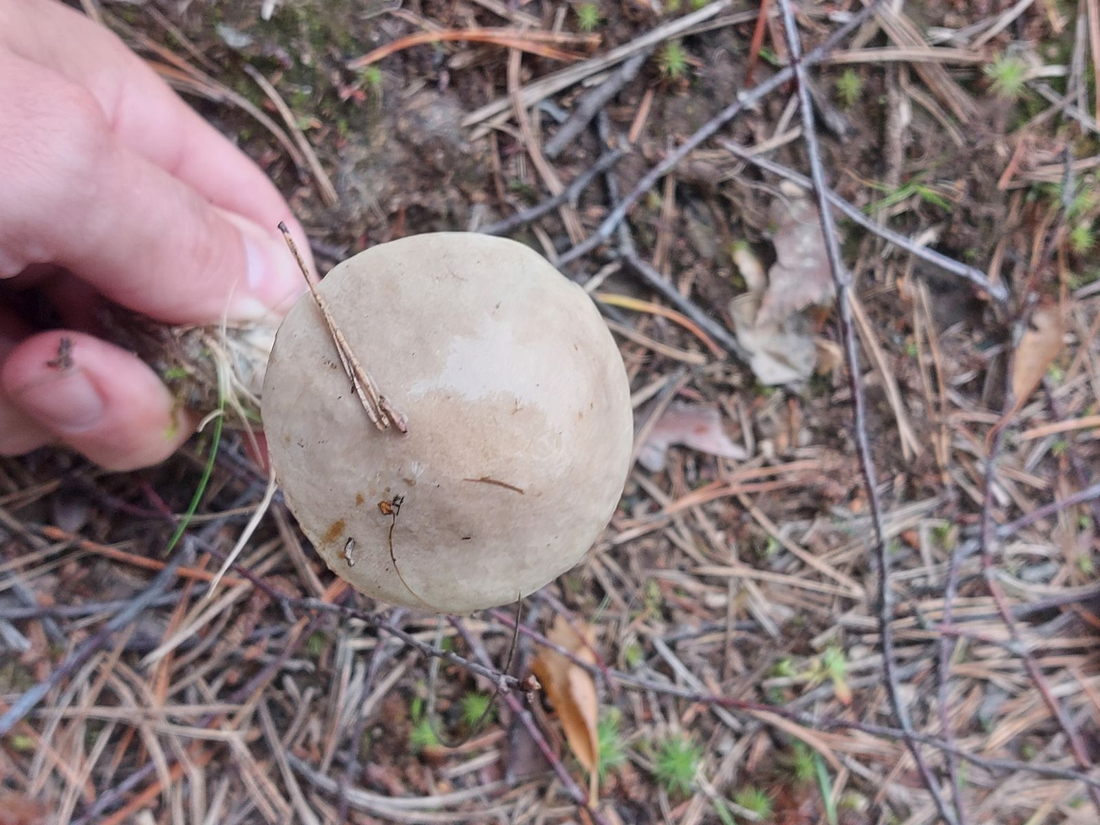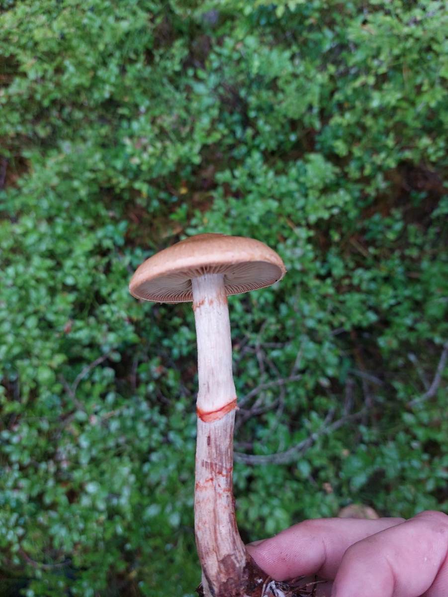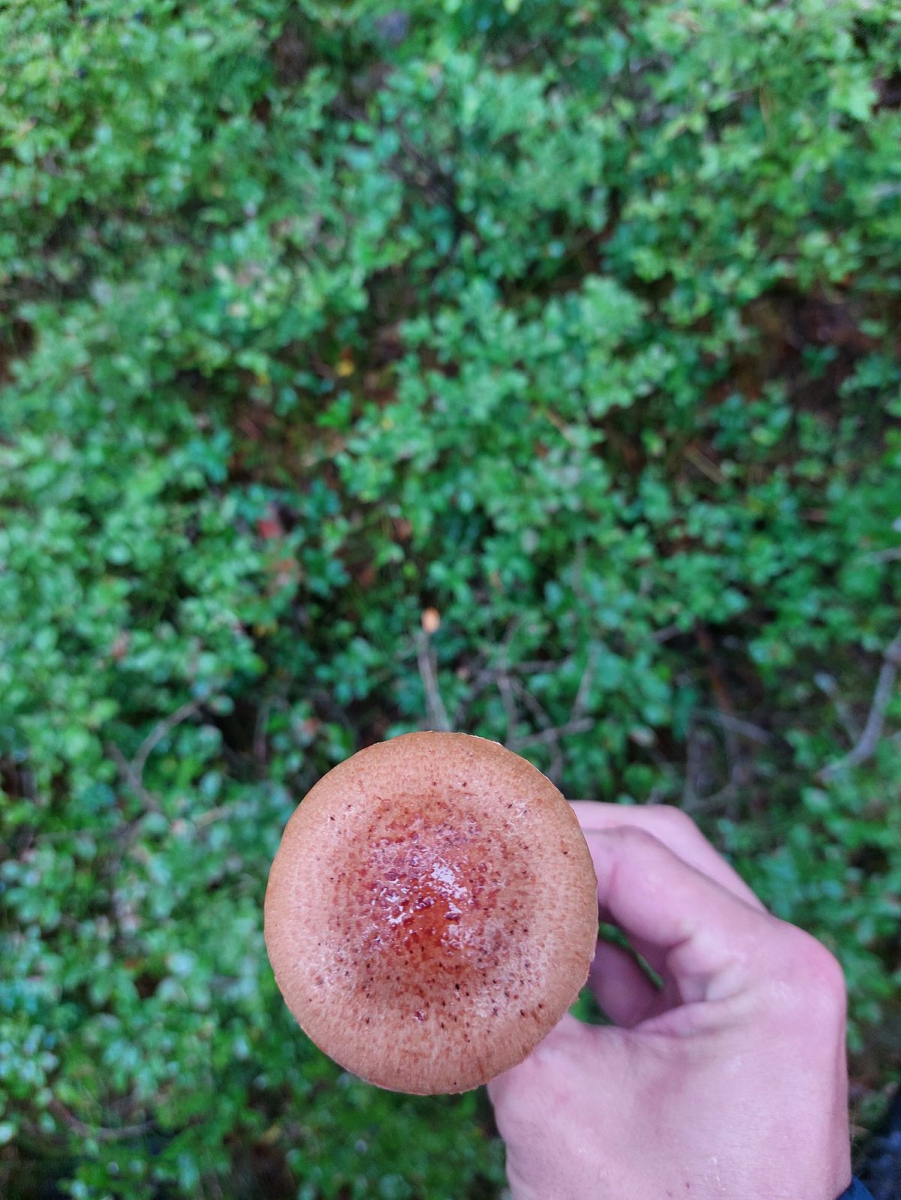 danke, morgen schaue ich nochmal und versuche ein frisches Bild von den Röhren zu machen. Hier stehen noch ein paar. Habitat ist in einem Birken und Fichtenwaldgebiet zwischen mehreren Seen. Definitiv feucht, teilweise sogar schwimmendes Land, moorig. Sowohl im Wald als auch am Ufer auf der Freifläche neben Birken. Bei meinem Exemplar dass jetzt schon länger liegt, verfärben sich die Röhren braun. Der Hut ist minimal klebrig, aber eher glatt und wachsartig, keinesfalls schmierig. Der Hutrand steht deutlich über.