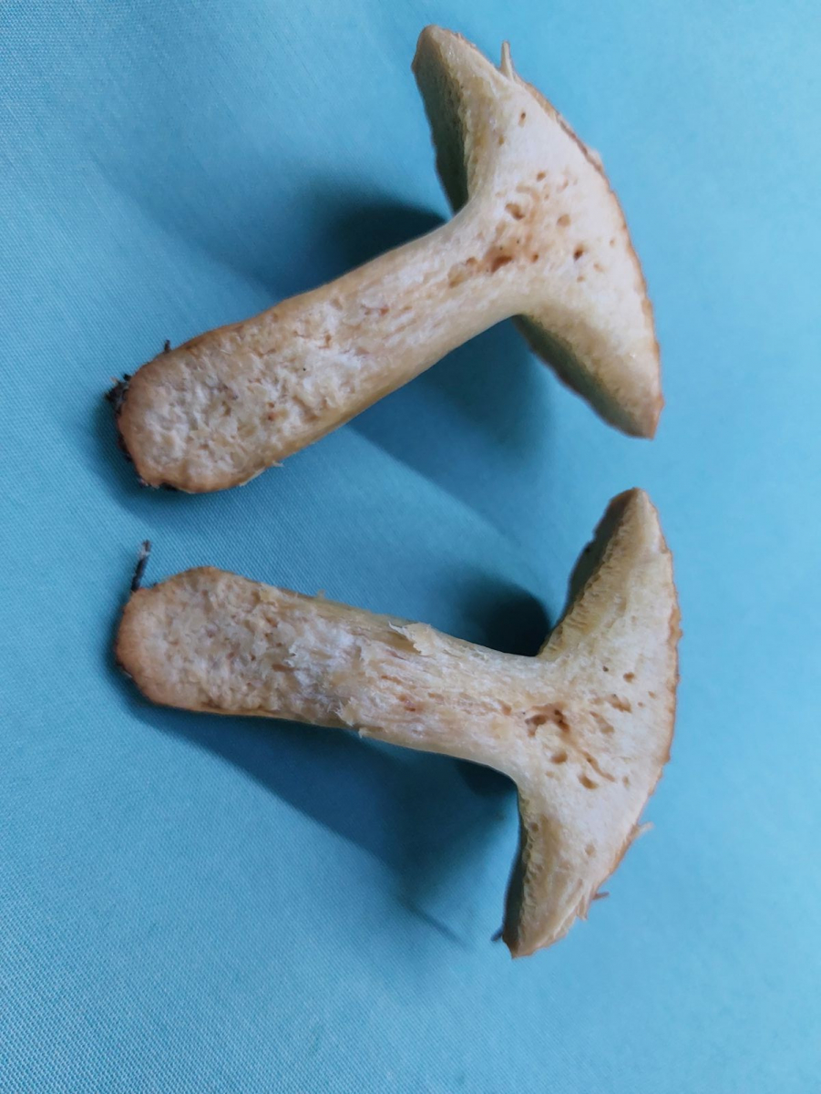 Einen Namen haben die immer noch nicht bekommen. Da war sogar Dr. Christoph Hahn überfragt. Die habe ich übrigens auf einer mageren Wiese gefunden. Meine damalige Vermutung (Leccinum duriusculum), da auch eine Pappel in der Nähe stand, habe ich längst verworfen (keine typische Fleischverfärbung).