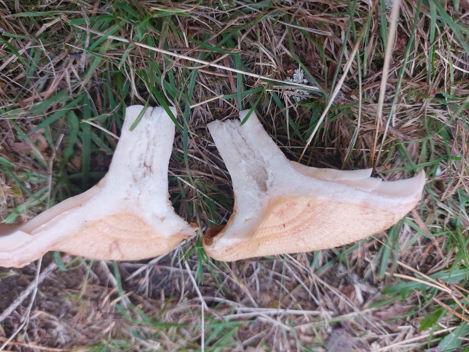 2) Ich dachte erst an den Flaumigen Birken-Milchling. Habitat hätte gepasst. Wie auch bei Ersterem: Fichten, Heidekraut, Birken. Aber mir fehlen die geschwungenen Lamellen am Stiel und ausserdem ist mein Exemplar deutlich gezont.