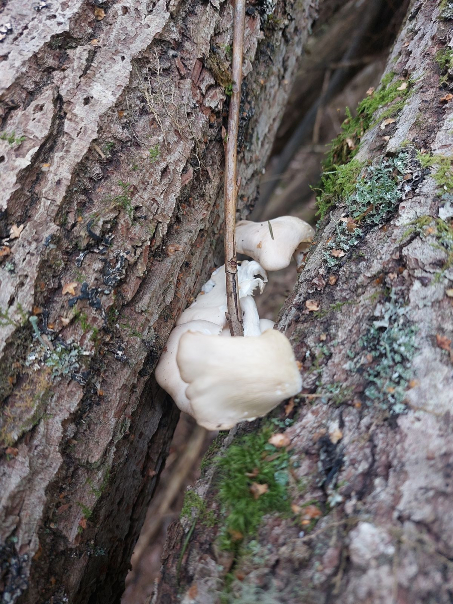 • Zu 1: Um die Jahreszeit wenn dann eher die Zuchtform von Austernseitling, die keinen Kältereiz zum Fruchten braucht. Es können aber auch Lungenseitlinge sein, die sind auch nicht immer ganz weiß. Was bei beiden nicht passend ist, wäre der Geruch. Allerdings kann das auch dem Zustand geschuldet sein.