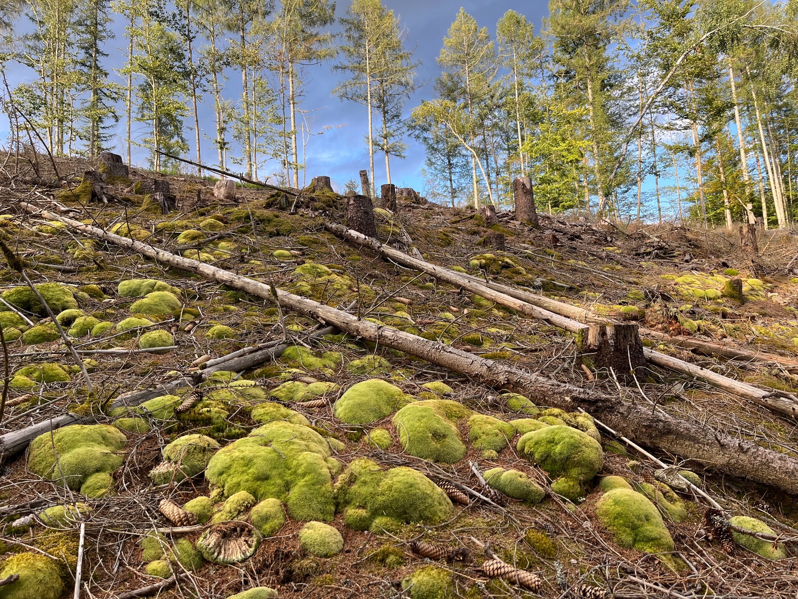 1. Der Blick auf den Restwald und das sterbende Moos sieht aus wie von einer besoffenen KI generiert.