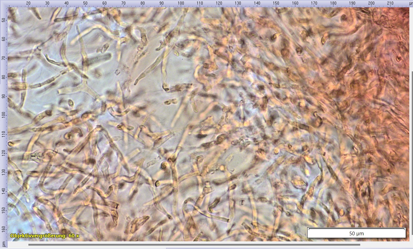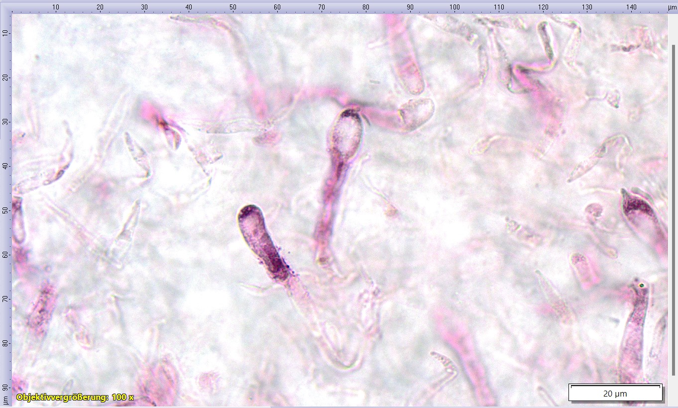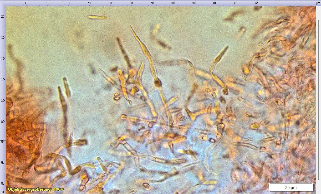 Pileozystiden und Primordialhyphen inkrustiert