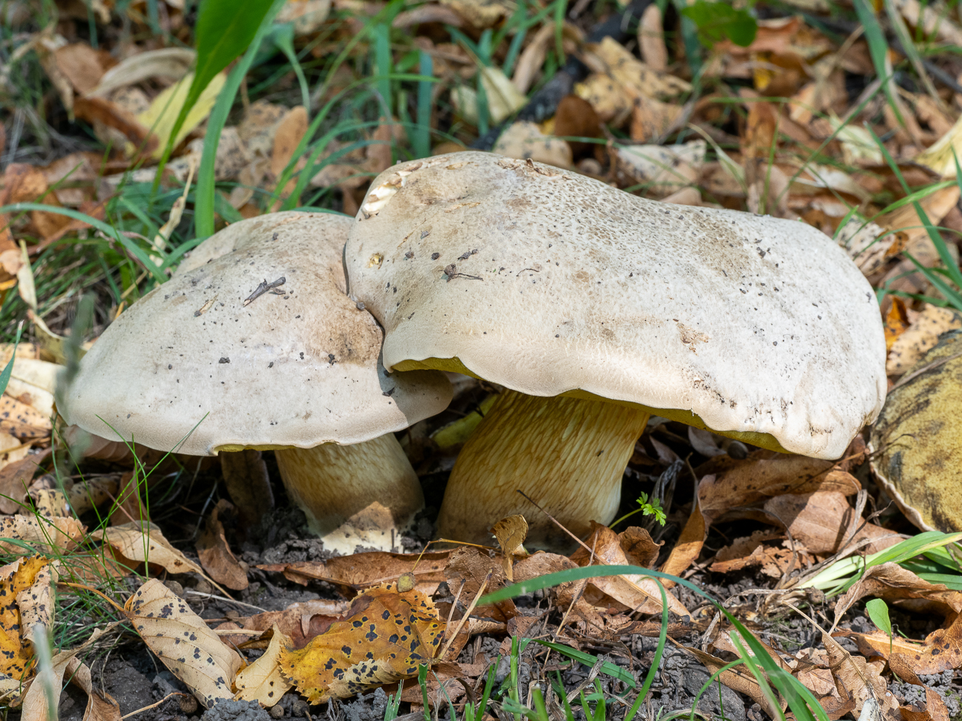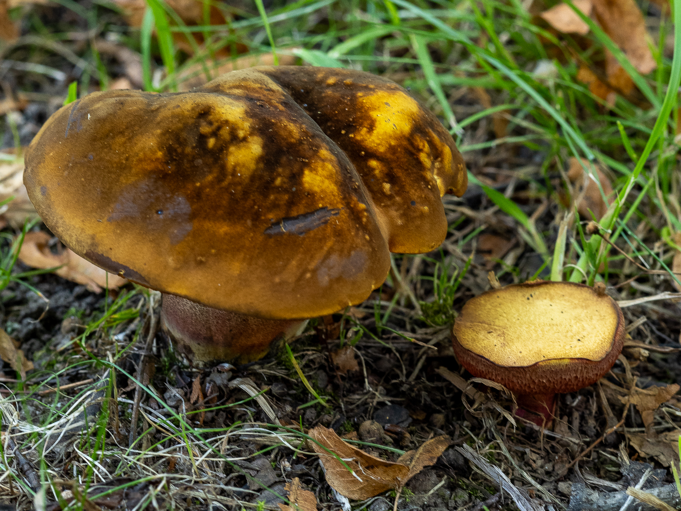 6. Neoboletus cf. xanthopus steht jedes Jahr im Park. Die Sequenzierung hat leider nicht geklappt, aber Sporenmaße und Habitat sprechen dafür. Den echten Flockenstieligen Hexenröhrling gibt es in dem Park meiner Meinung nach gar nicht. Vielleicht schicke ich im Winter nochmal ein anderes Exemplar ein - bis dahin halt weiterhin mit cf.