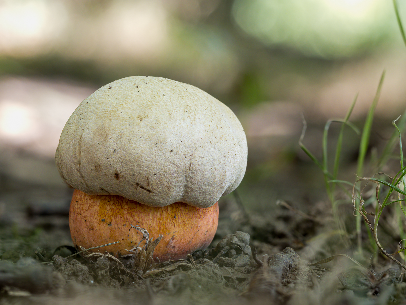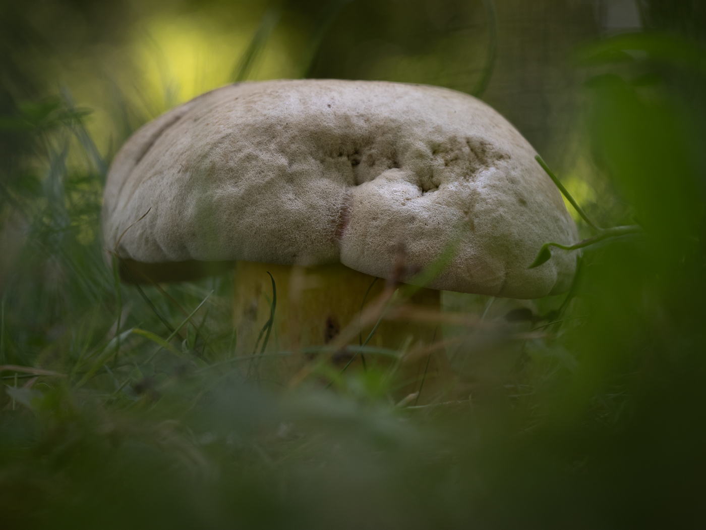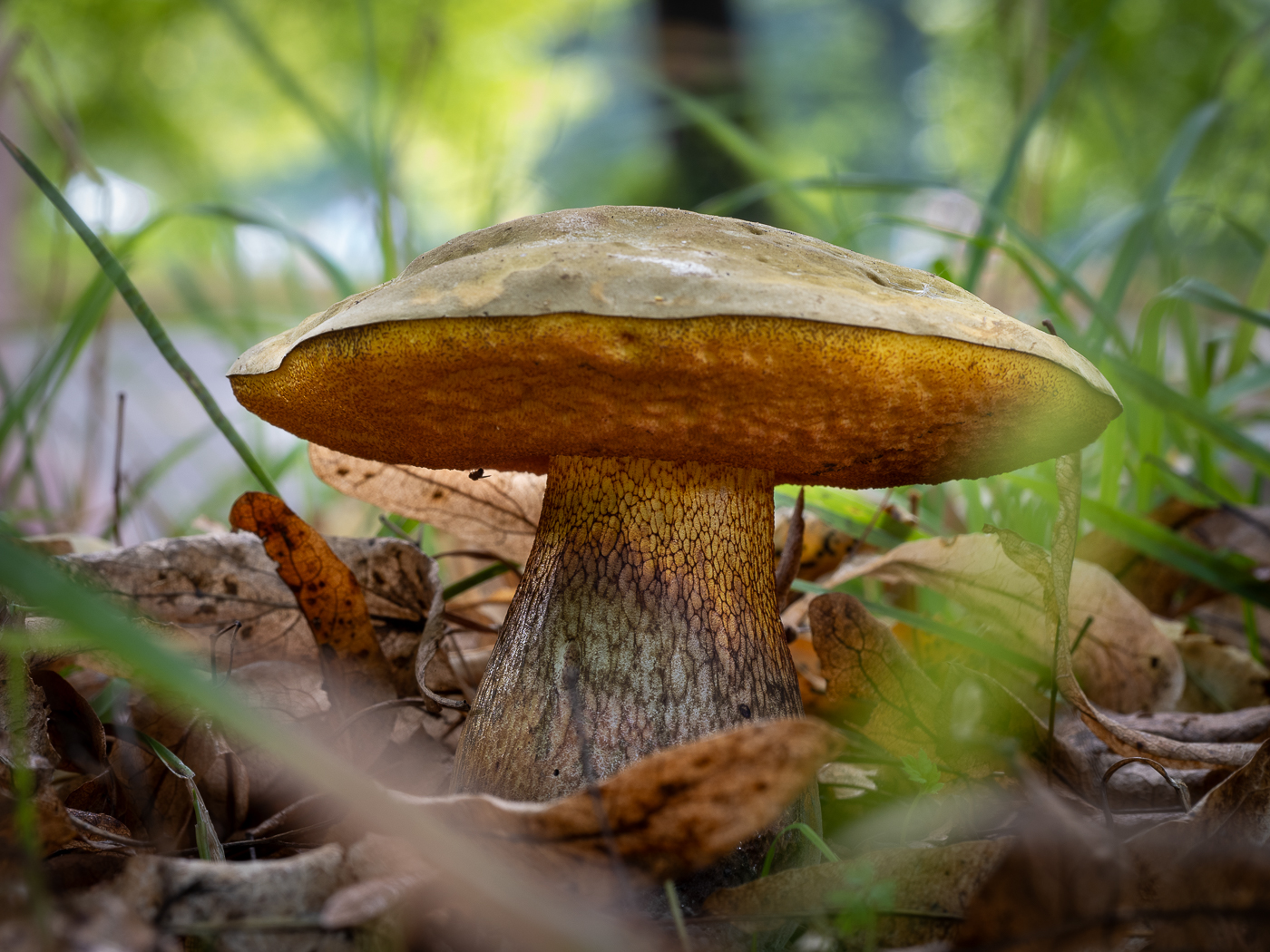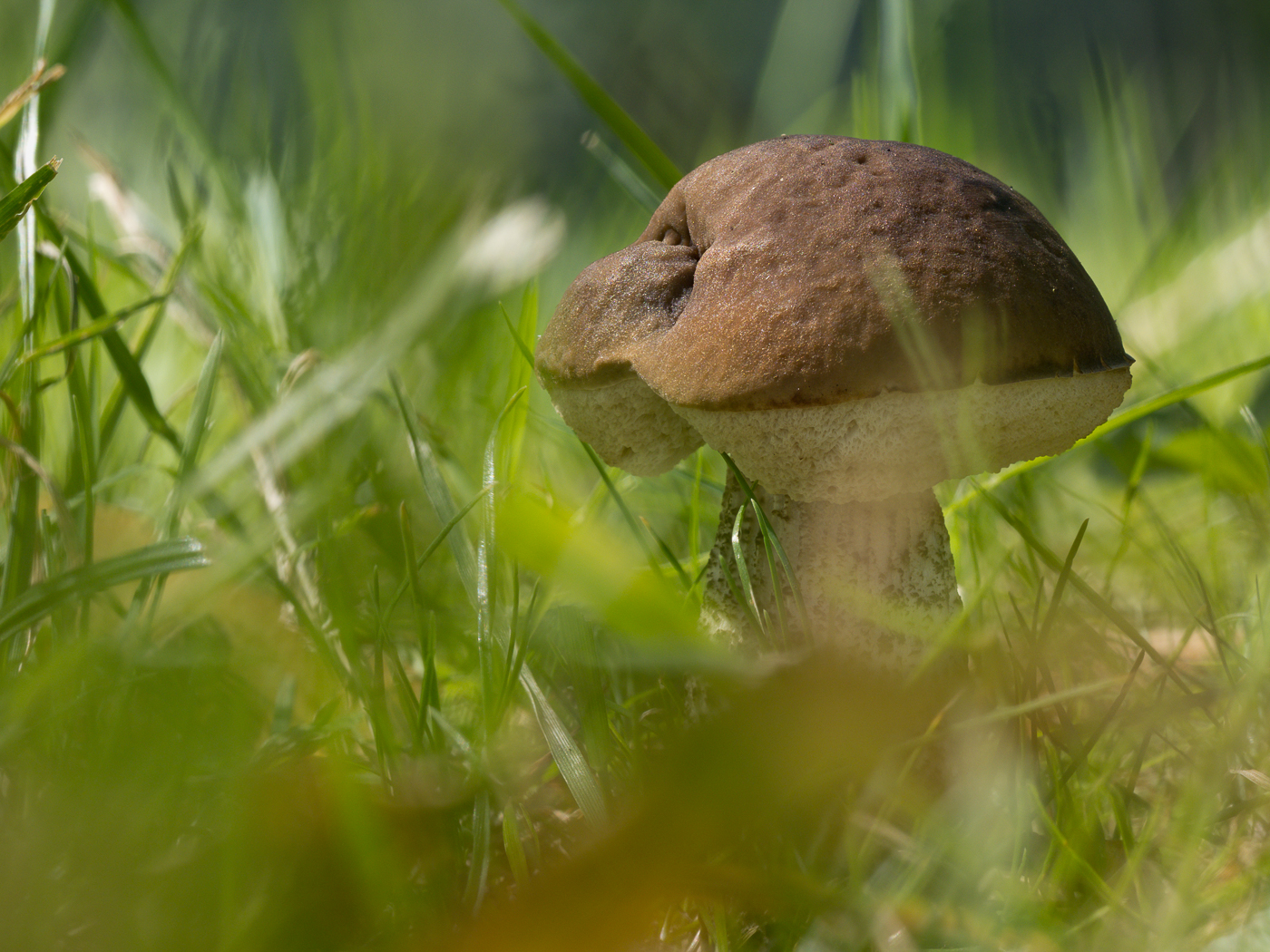 8. Ein einsamer Hainbuchenröhrling im Gras.