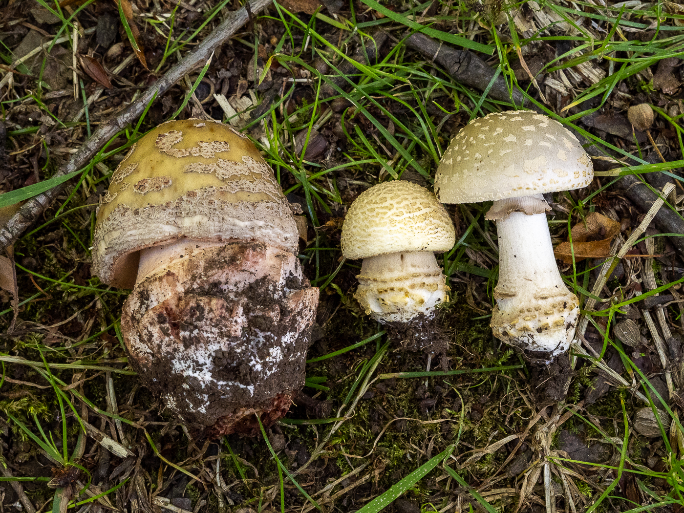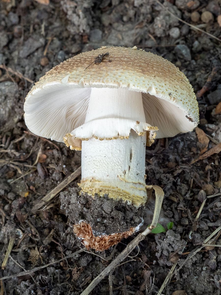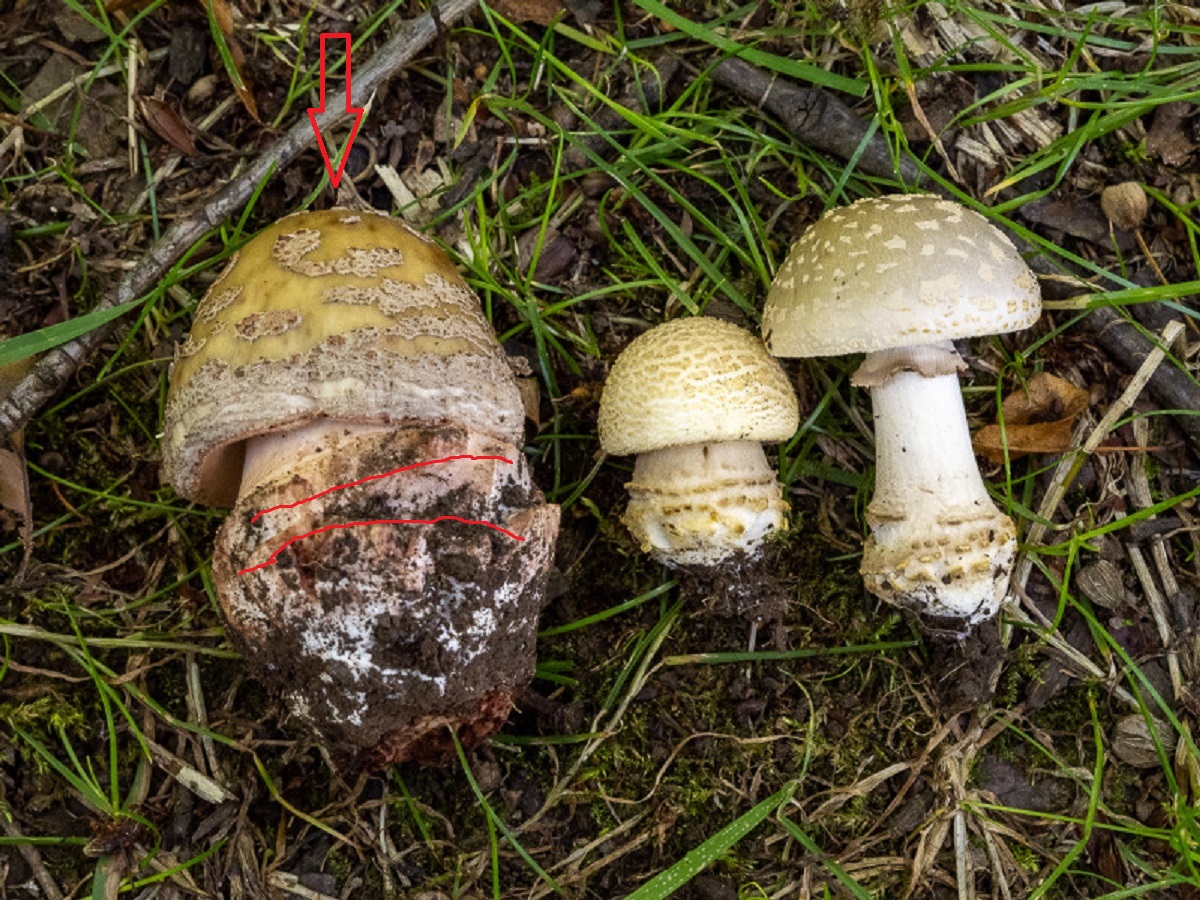 Wer behauptet, dass nur der Perlpilz in Sektion Validae Rottöne zeigen darf, kennt A. franchetii nicht. ![]()