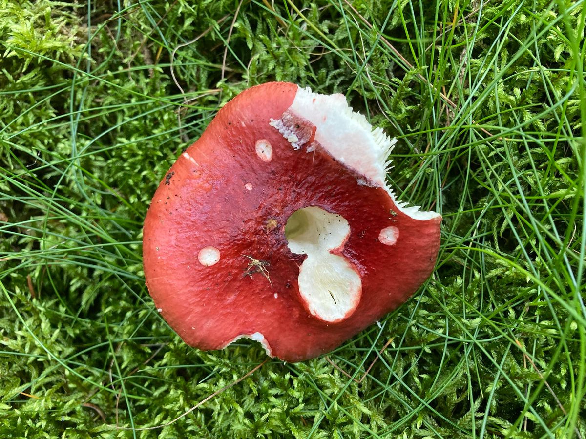 Gestern bin ich im Wald auf ca. 1750m auf ein paar Täublinge gestossen. In der Nähe habe ich Fichten und Lärchen gesehen. Der Geruch ist angenehm obstartig, der Geschmack leicht scharf. Ich habe zuerst ein Stück vom kleinen FK probiert und konnte kaum eine Schärfe ausmachen. Dann habe ich nochmal ein etwas grösseres Stück von einem weiteren FK probiert und konnte dann nach einigem Kauen eine Schärfe wahrnehmen, die etwas auf der Zunge und dann im Mund gebrannt hat. Also etwas scharf, aber wirklich nicht sehr scharf. Zuerst dachte ich eigentlich an Russula queletii, aber der müsste wohl schärfer sein. Die Sporenpulverfarbe liegt soweit ich sehe bei IIIa. Oehrling hat die Kandidaten R. torulosa oder R. sanguinaria erwähnt. R. torulosa würde mir eigentlich gut gefallen, allerdings gibt es bei uns eigentlich so gut wie keine zweinadeligen Kiefern und die scheint dieser ja als Mykorrhiza-Partner zu brauchen. Was ich mir höchstens vorstellen könnte, wäre, dass irgendwo eine kleinere Bergkiefer (Pinus mugo) geständen hätte. Die habe ich bei uns in der Höhe schon ein paar mal gesehen und sind zweinadelig. Weiss jemand, ob es eine Rolle spielt, welche Kiefer als Partner dient, bzw. ob eine Bergkiefer in Frage kommen könnte? R. sanguinaria habe ich noch nicht so genau angeschaut, wäre aber sicher auch noch eine gute Idee. Aber jetzt zuerst mal zu den Fotos. Vielleicht habt ihr ja noch ein paar Vorschläge.