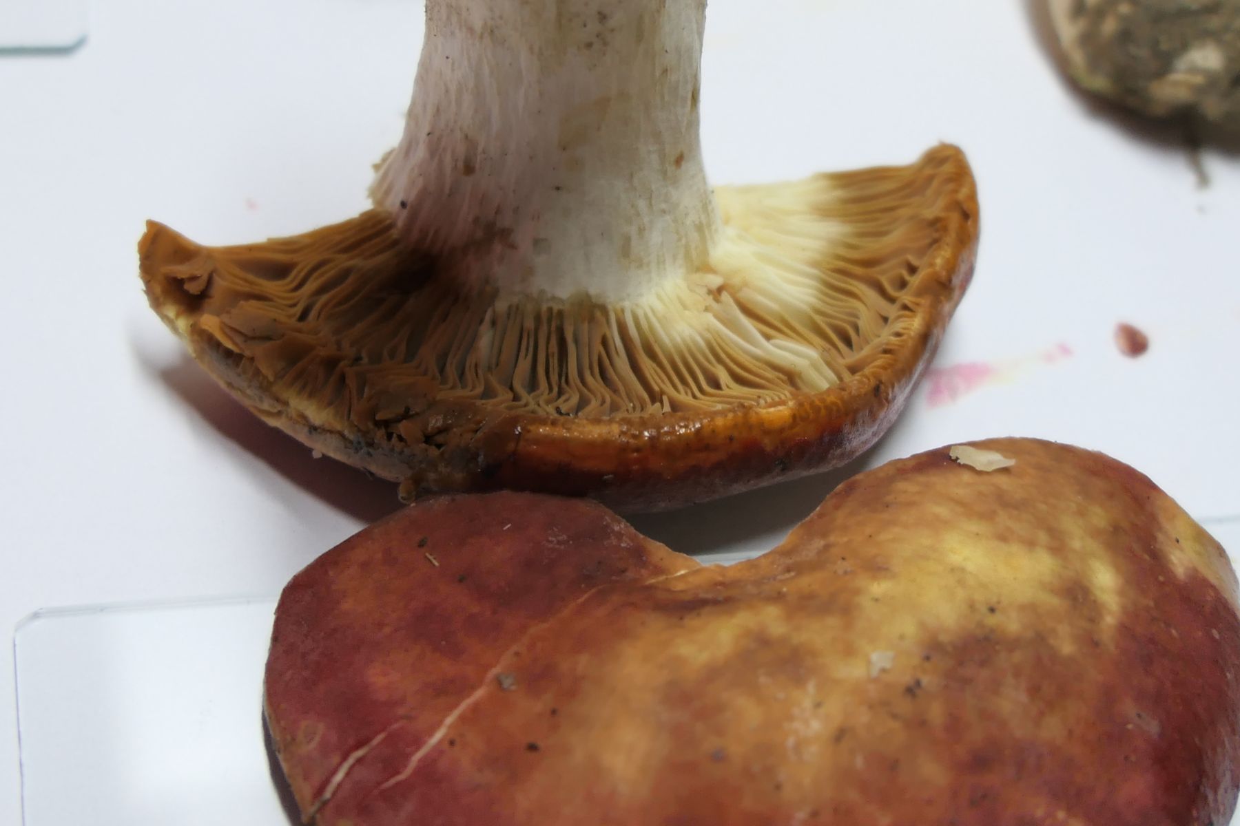 gabs auch noch eine 06 Russula pseudointegra - den ockerblättrigen Zinnobertäubling, der auch nach einer Minute keinerlei Reaktion auf frisches Guajak zeigte: