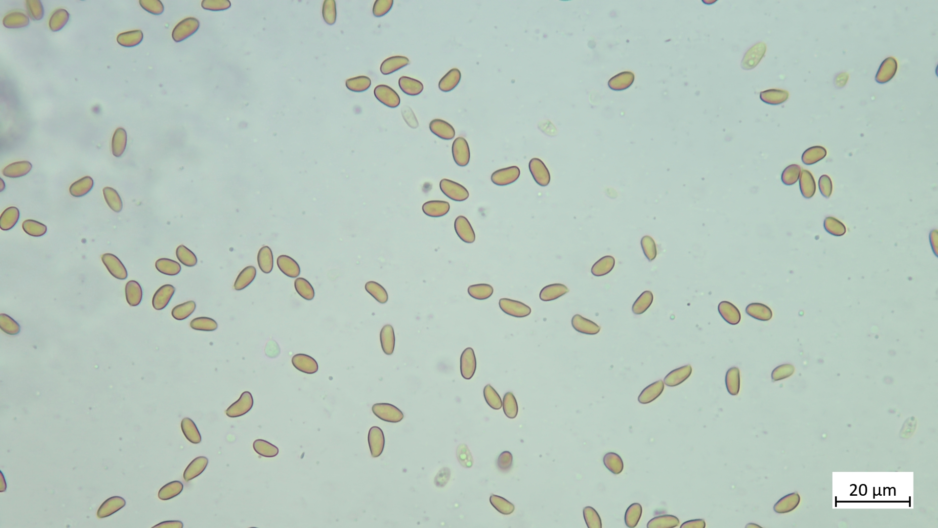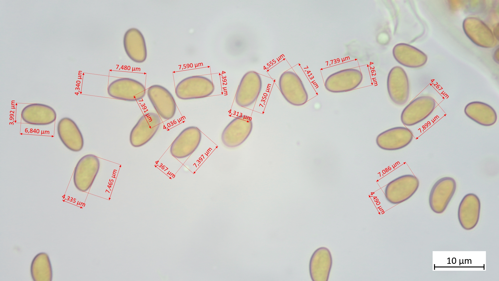 Sporen: 6,8-7,9 µm (av. 7,4 µm, SD 0,3 µm) x 4,0-4,6 µm (av. 4,3 µm, SD 0,2 µm); Q = 1,6-1,9 (av. 1,7, SD 0,1)(n = 11)