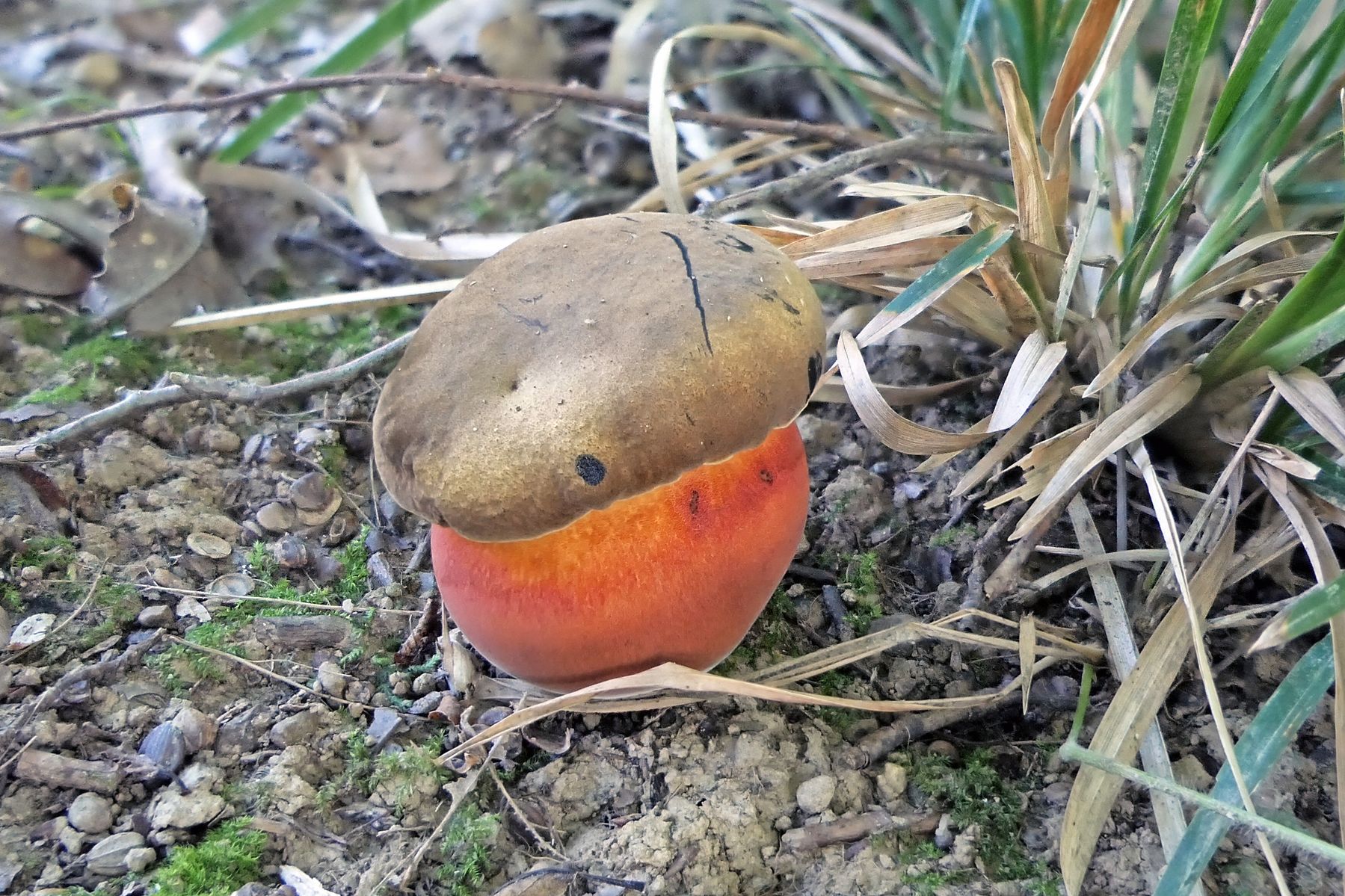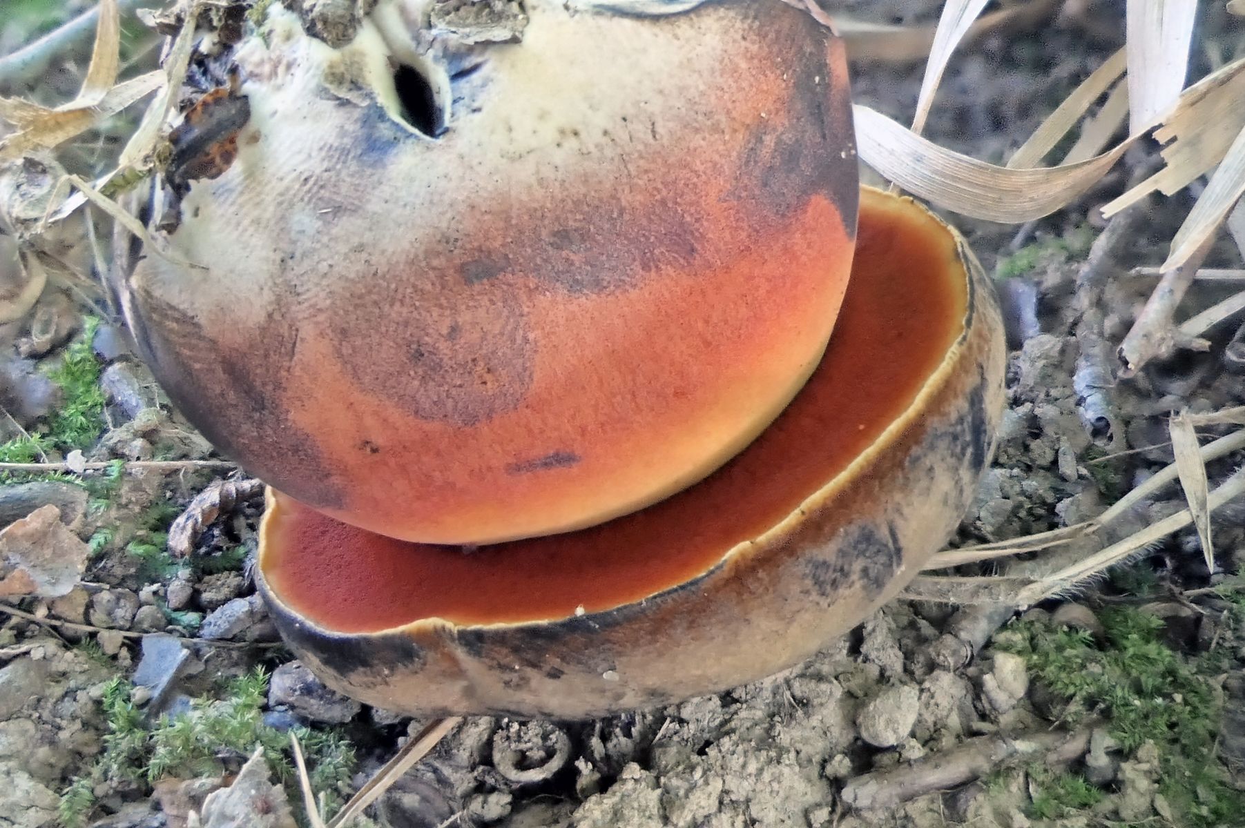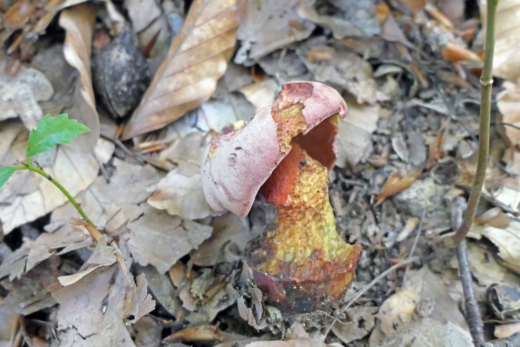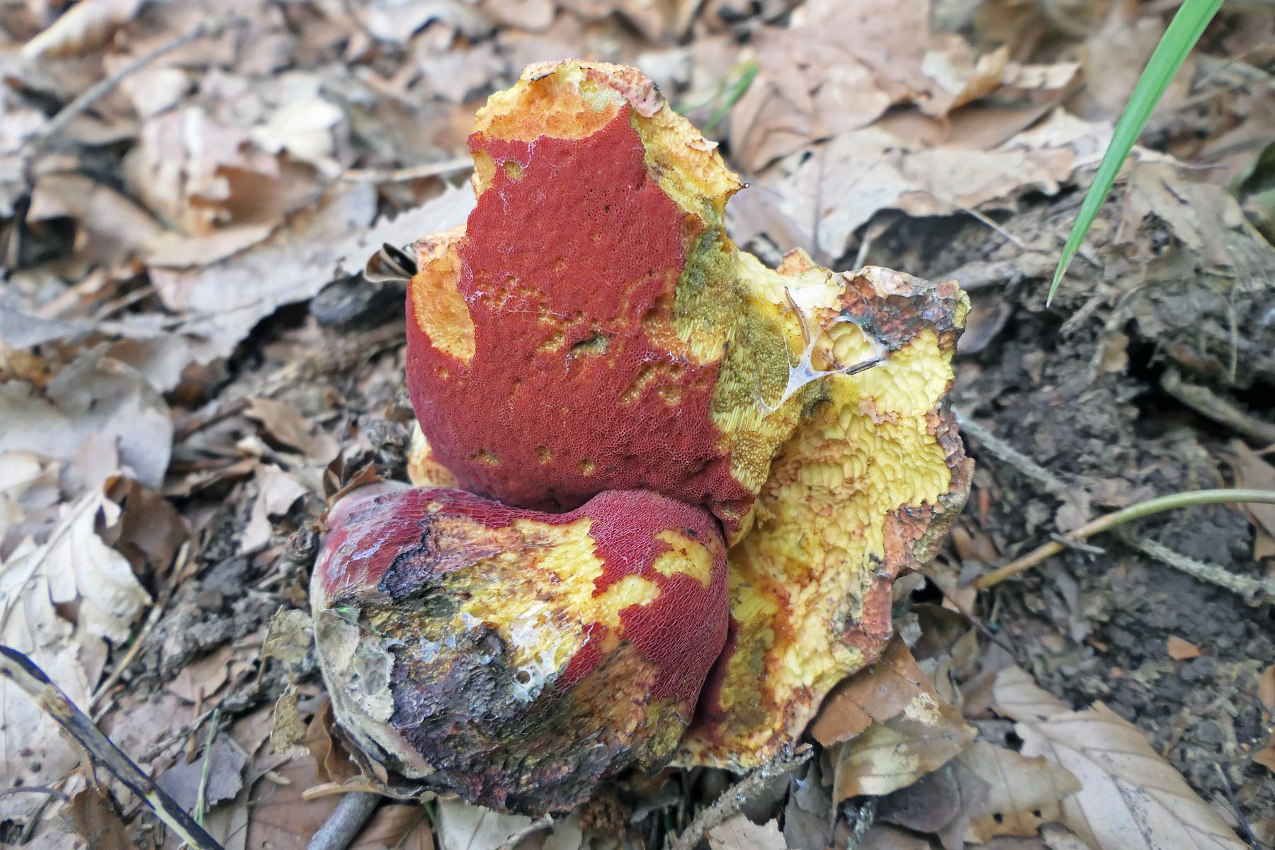 Auch 14 Rubroboletus rubrosanguineus - den weinroten Purpurröhrling gab es nur stark angefressen. Ich habe mich dennoch über einen neuen, mir bisher unbekannten Standort gefreut.