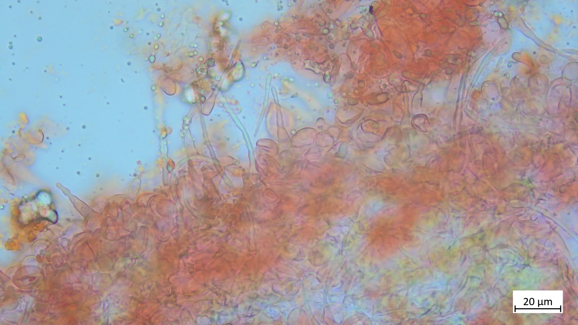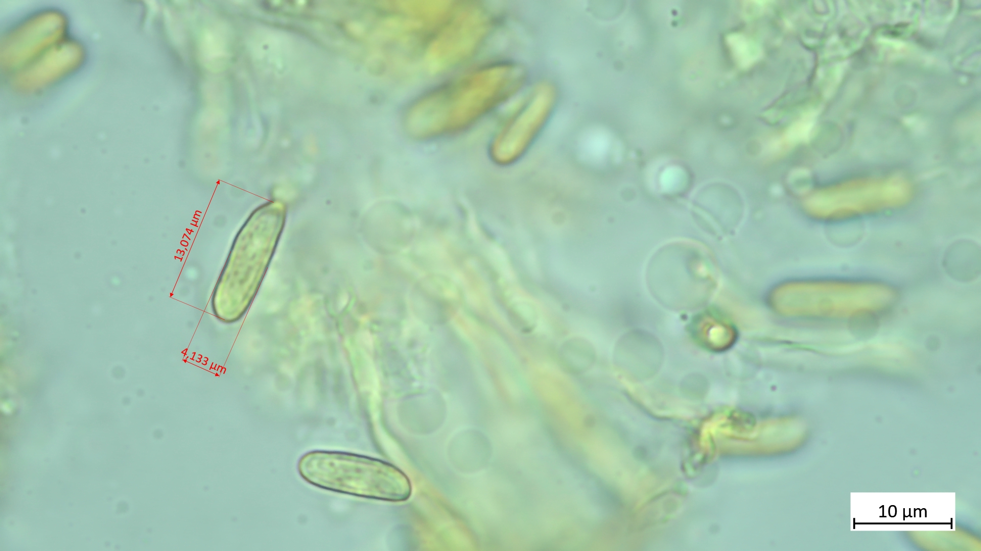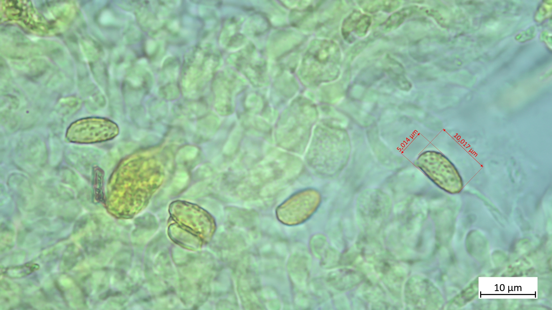 Sporen: 6,8-7,9 µm (av. 7,4 µm, SD 0,3 µm) x 4,0-4,6 µm (av. 4,3 µm, SD 0,2 µm); Q = 1,6-1,9 (av. 1,7, SD 0,1)(n = 11)