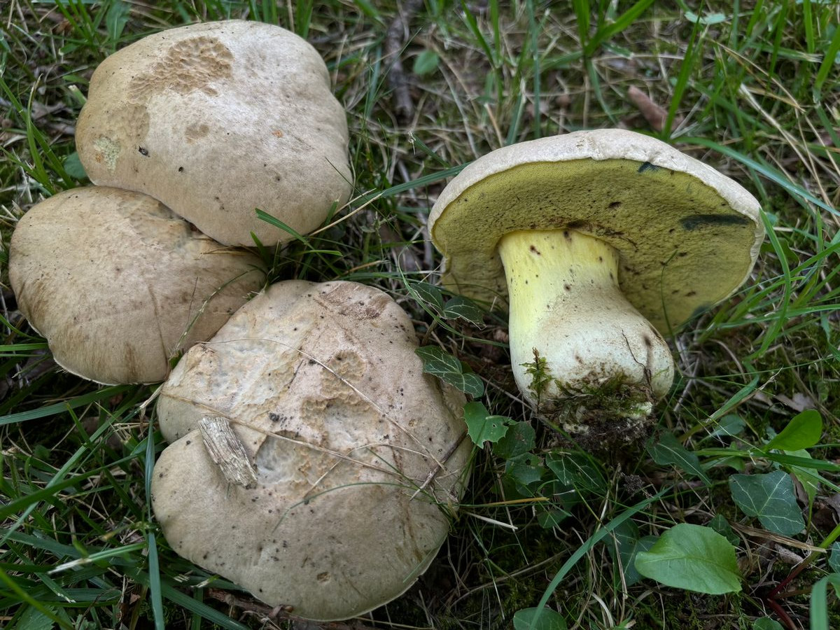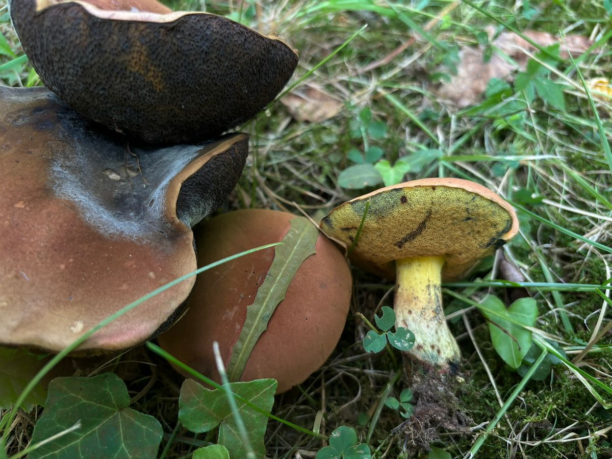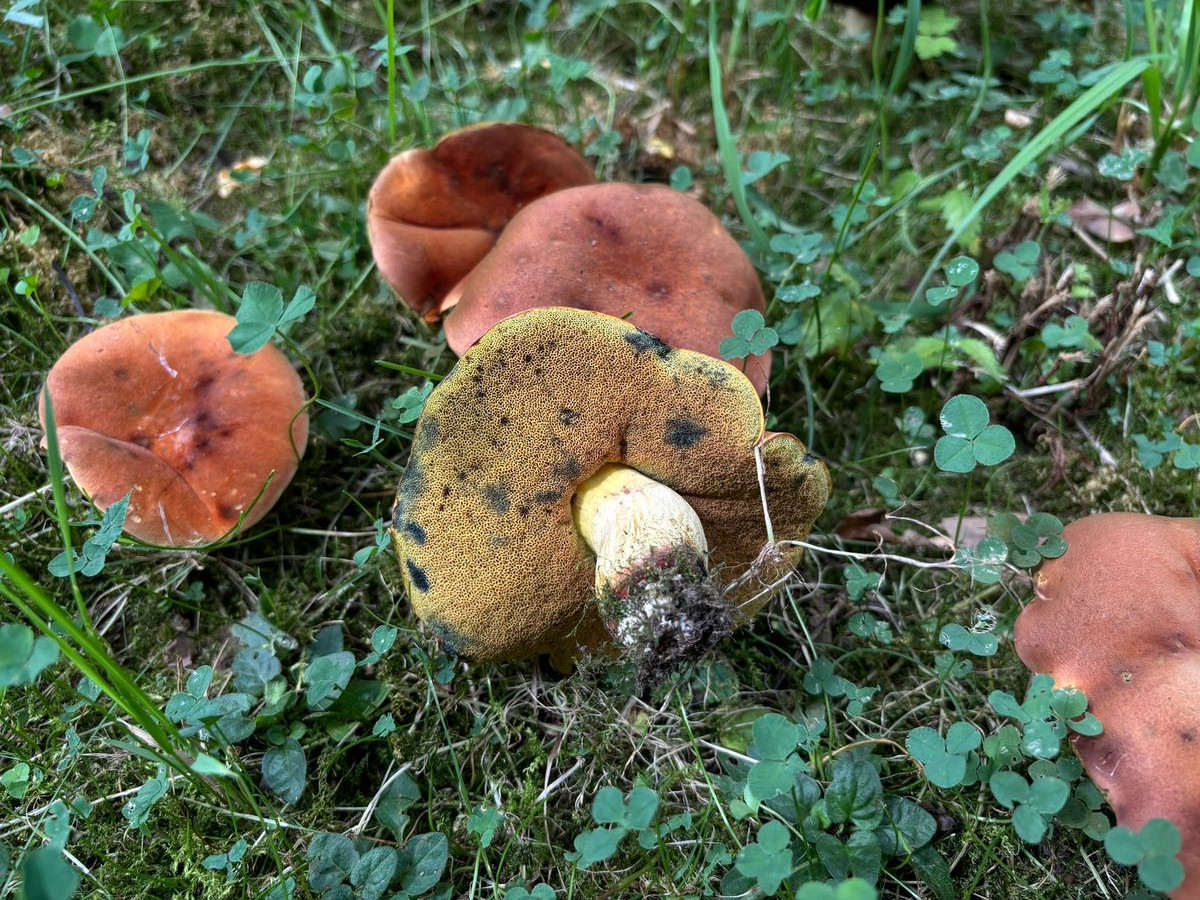 #5 In noch nie gesehener Menge, mindestens zwanzig Fruchtkörper des Glattstieligen Hexenröhrlings Suilellus queletii