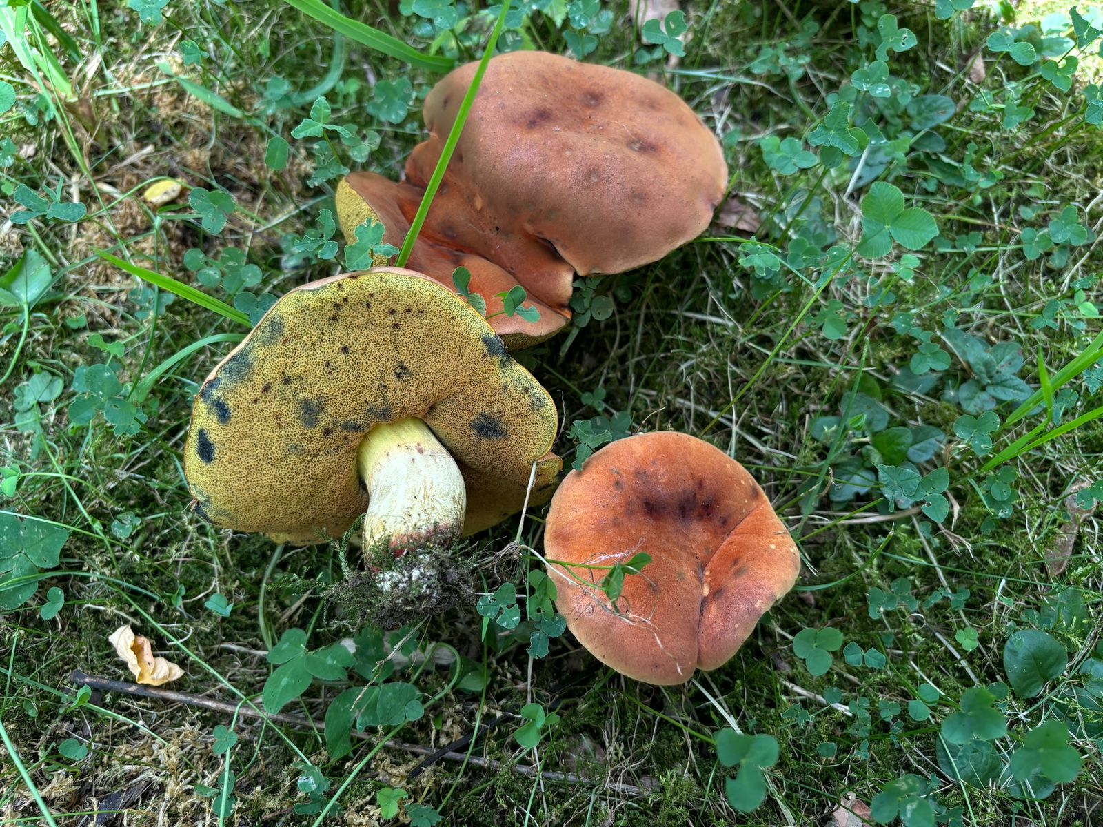 #5 In noch nie gesehener Menge, mindestens zwanzig Fruchtkörper des Glattstieligen Hexenröhrlings Suilellus queletii