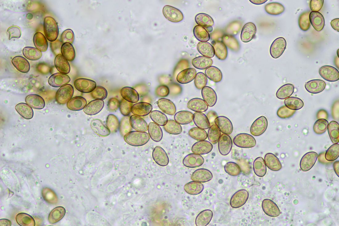 Sicher nicht, nein. Da hĂ€tte ich mir einen Fruchtkörper mitnehmen mĂŒssen, was ich leider verpasst habe. Auf dem Bild mit dem vertrockneten Fruchtkörper von unten, könnte man schon braune Sporen vermuten. Mit GlĂŒck komme ich nochmals an die Stelle.