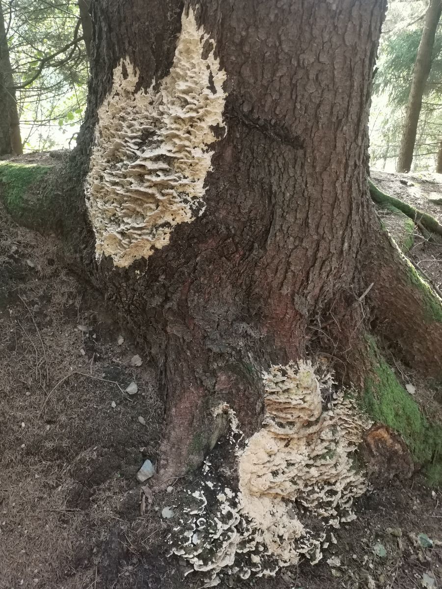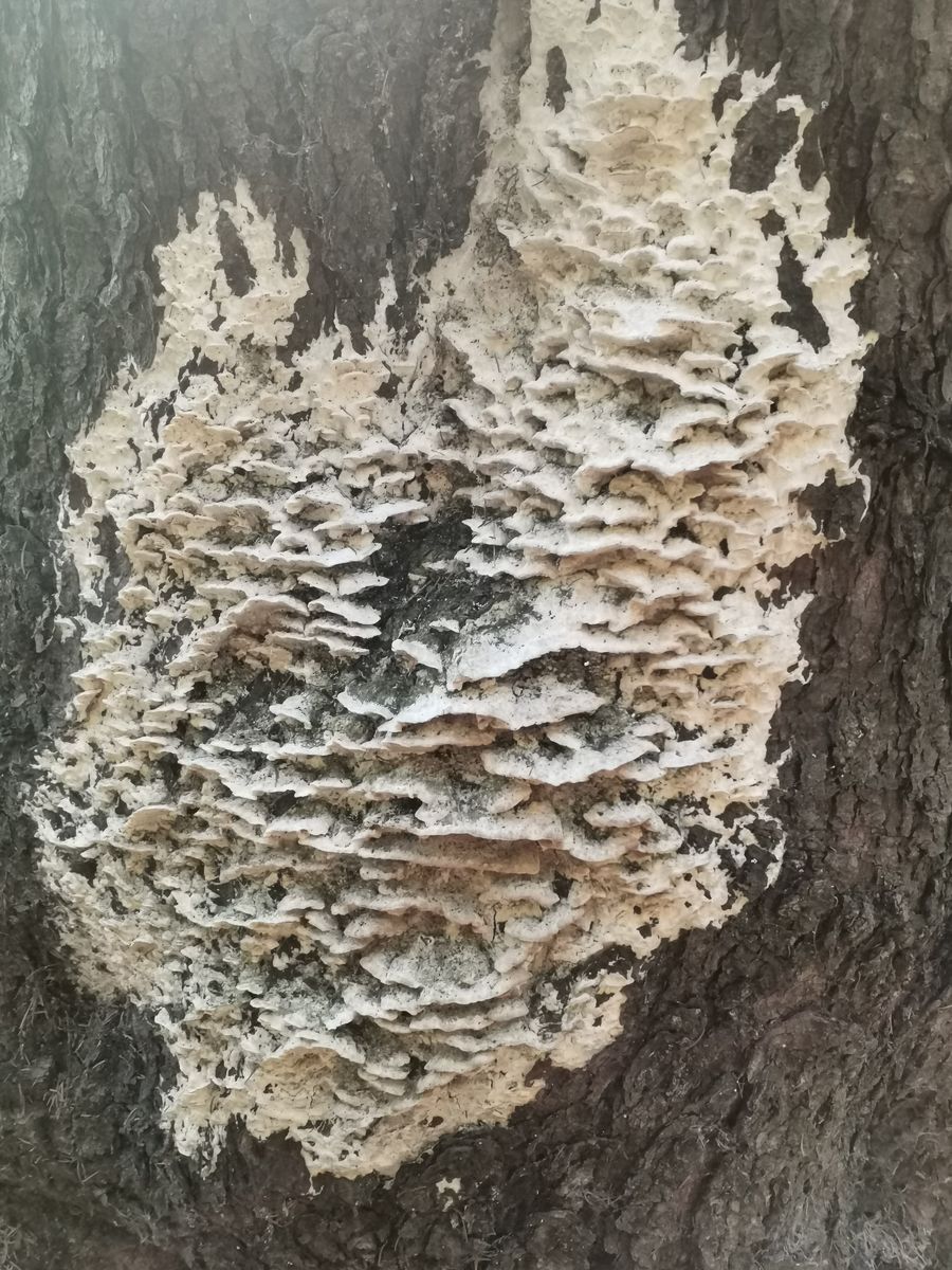Habt ihr eine Idee zu diesem pilzbaumbefall. Er wuchs an einem nadelbaum. Lg