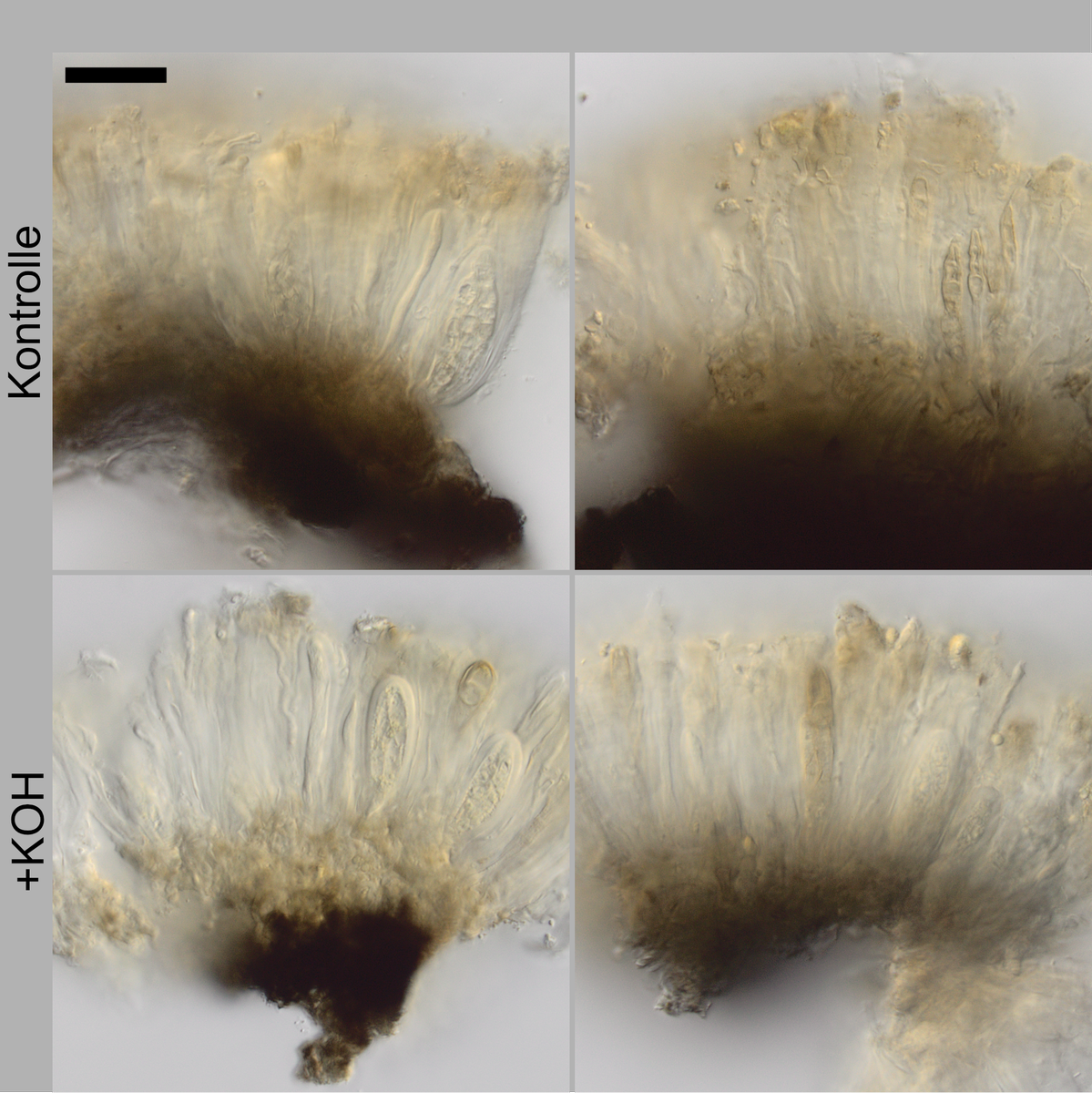 Ich hatte noch an O. calcarea gedacht, aber dort soll das Hyymenium komplett J+ blau sein. Das ist hier nicht der Fall.