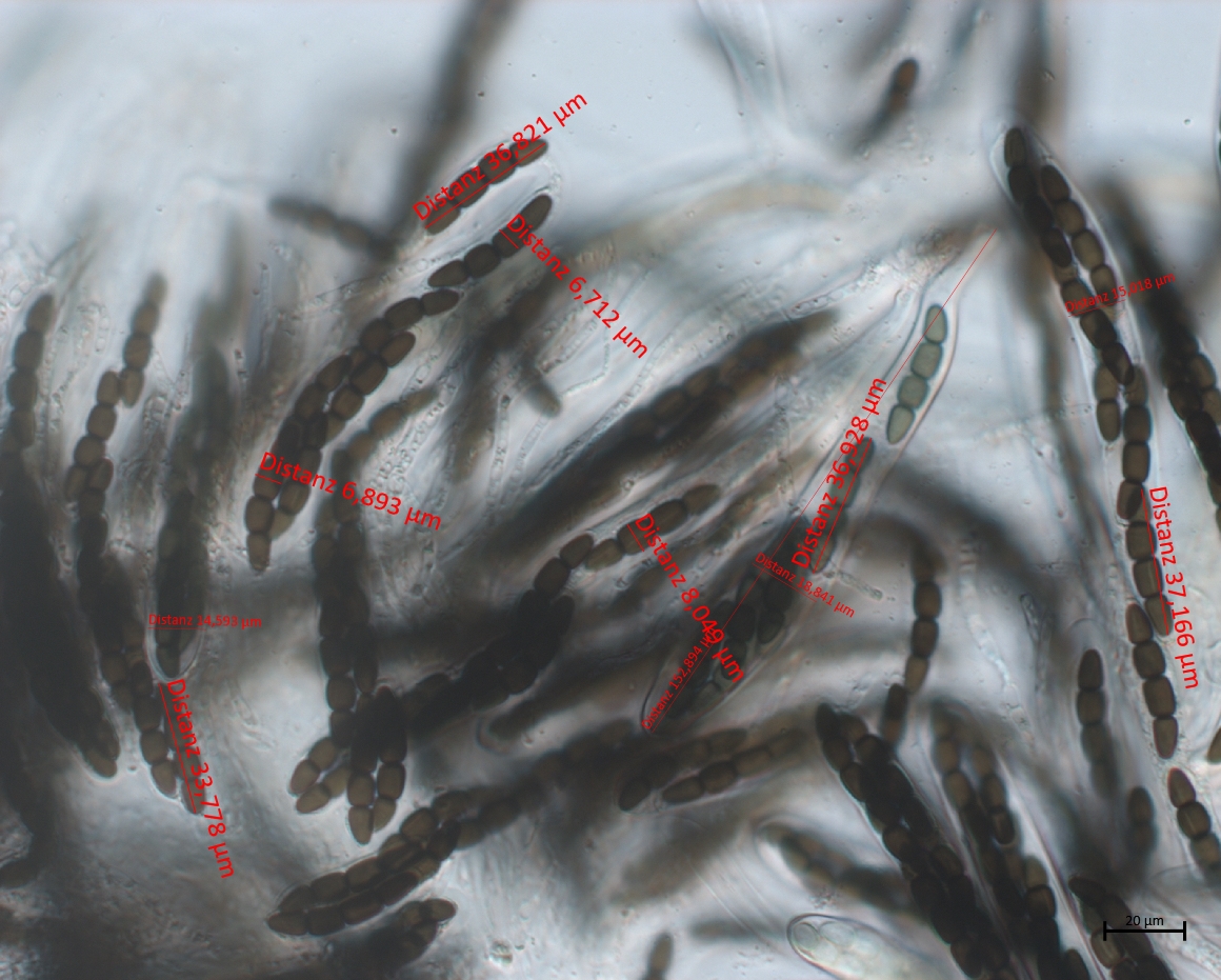 Sporengröße: 31-37 x ~6 Mikrometer