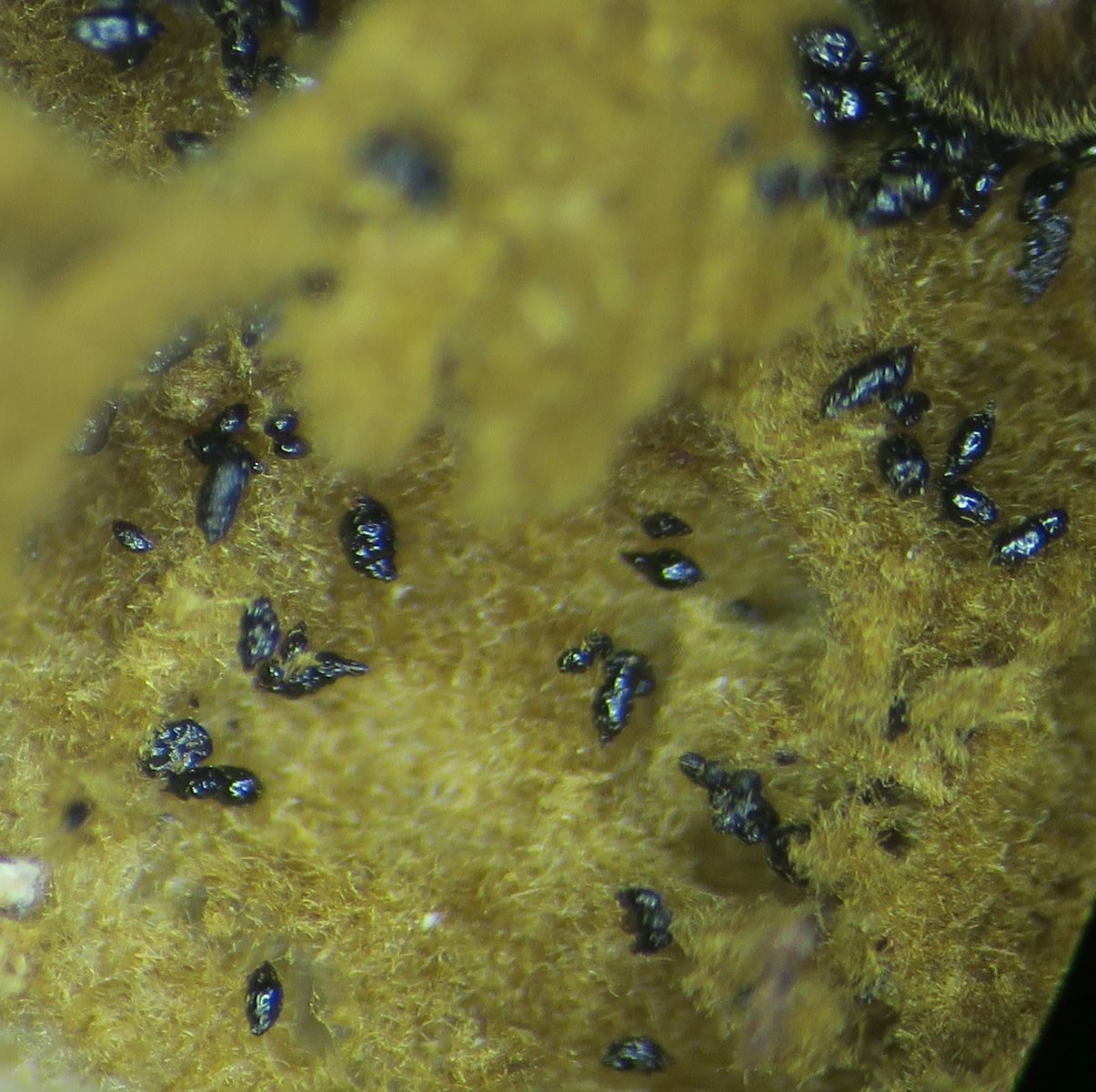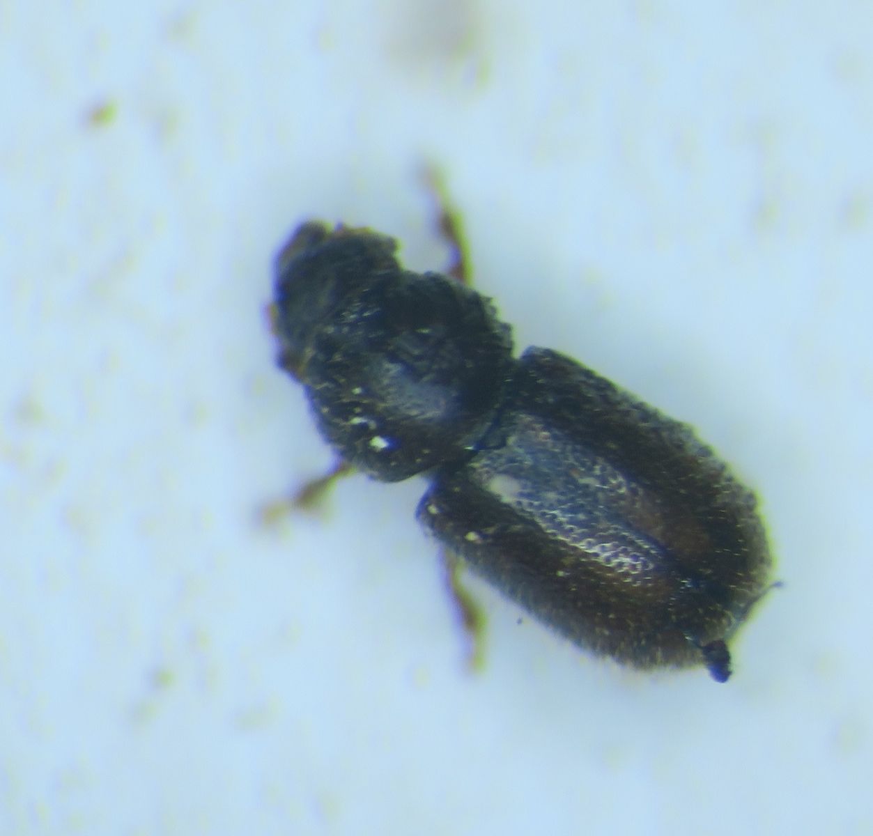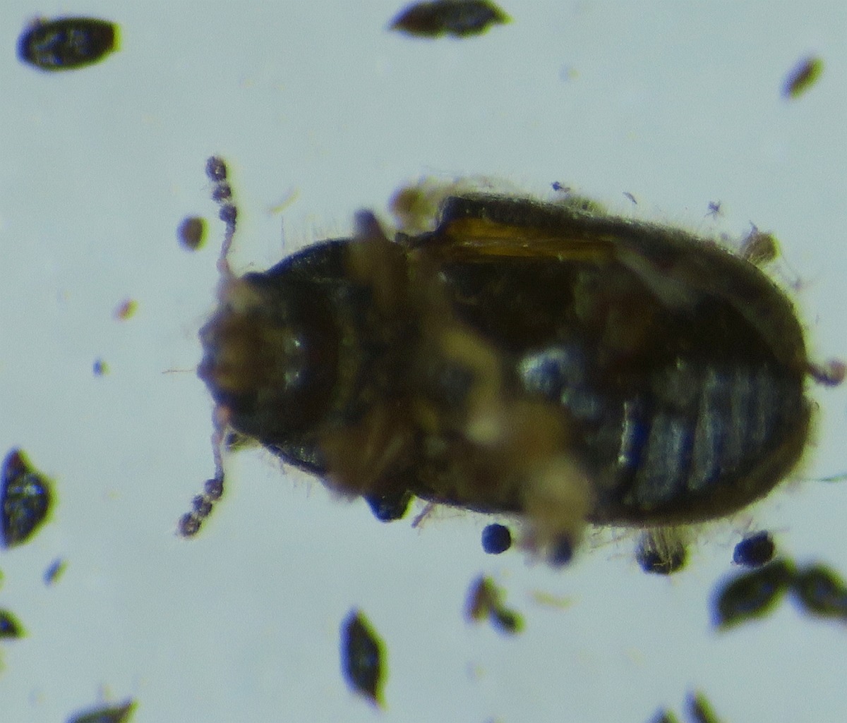 I was cleaning my mycology desk and preparing for a fresh start for the next season, and there were some old specimens of bracket fungi (Inonotus and Ganoderma, etc ). The hard specimens were soft and semi-pulverised by some small (2mm) beetle consuming them. They have not seen water for four months, but they hatched within the last two-three months. There were a lot. Soft moving, afraid of light with shiny brown exoskeleton and quite attractive antlers, made of three pale brown brushes. I was wondering if you had met these and what beetles they are. A quick search resulted in this interesting article: