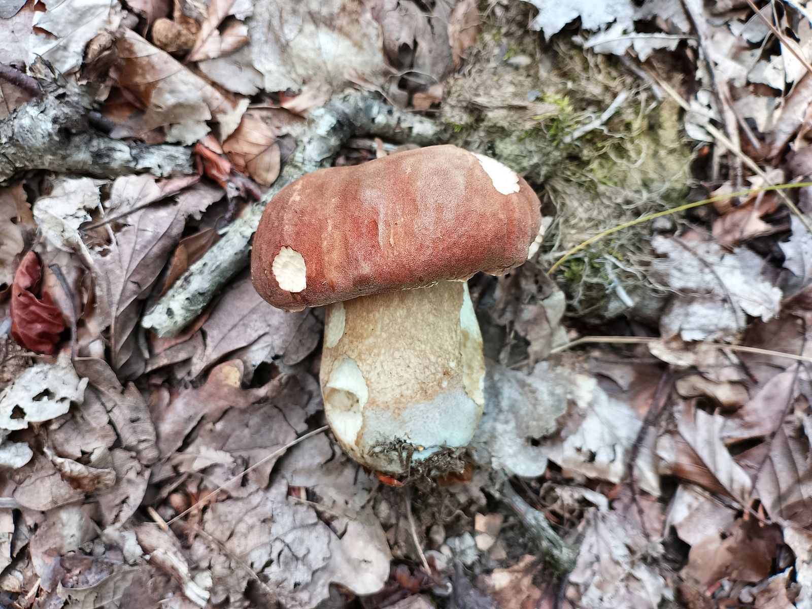 Fangen wir mal mit dem Erstfund an. Der Schönfußröhrling. Bisher nie gefunden und dann zeigt er sich mir plötzlich direkt am Wegesrand. Schon etwas ausgetrocknet, aber noch sehenswert.