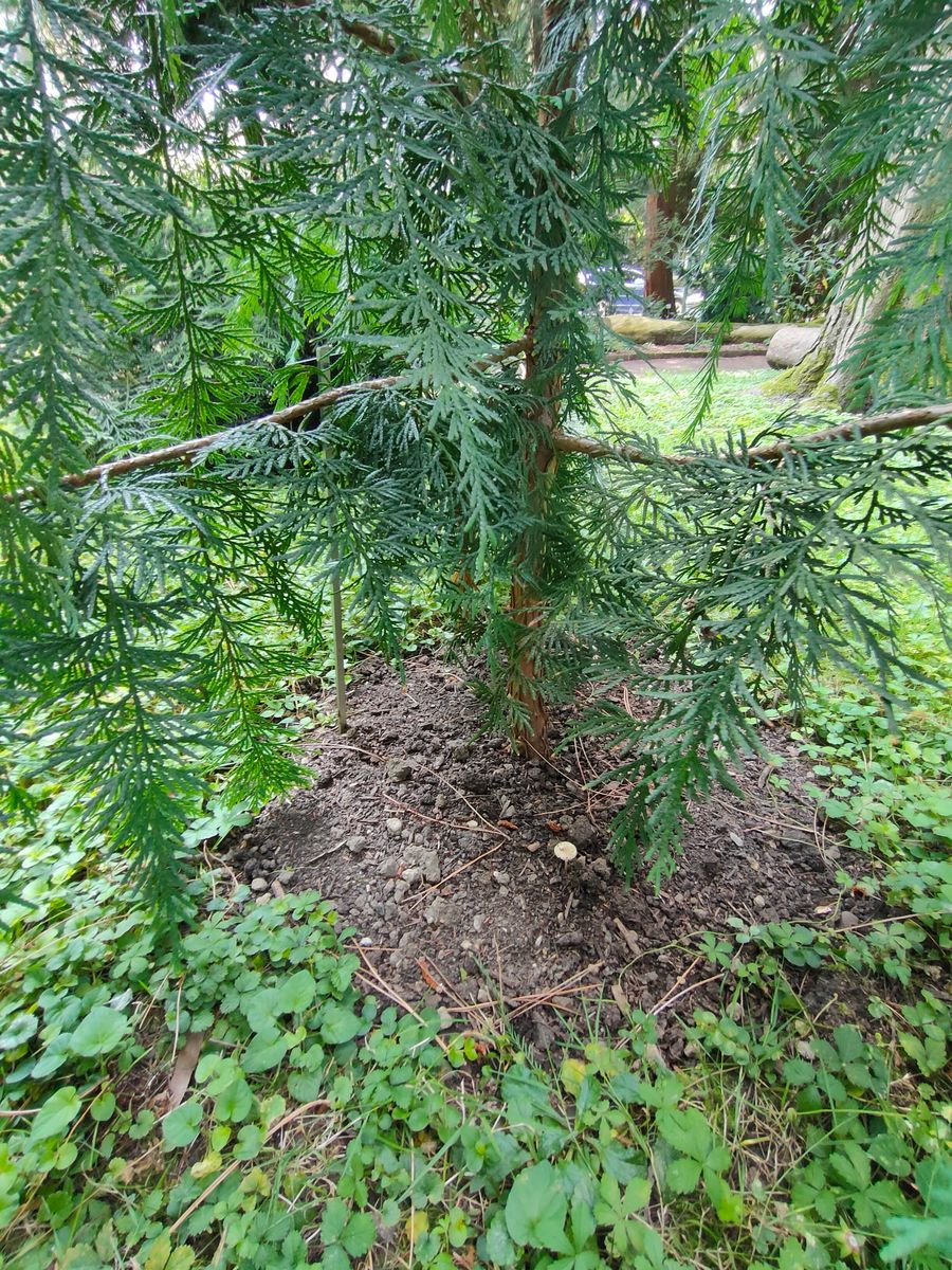 Dieser Ockerbraune kleine Pilz (2-3 cm) wuchs einzeln unter einer japanischen Tuja. Dieser hatte einen dünnhäutigen hängenden Ring.